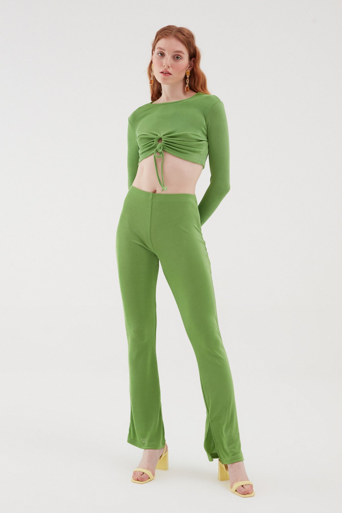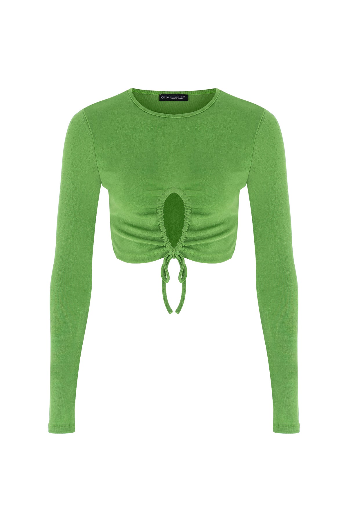 Dekolte Detaylı Crop Bluz Yeşil