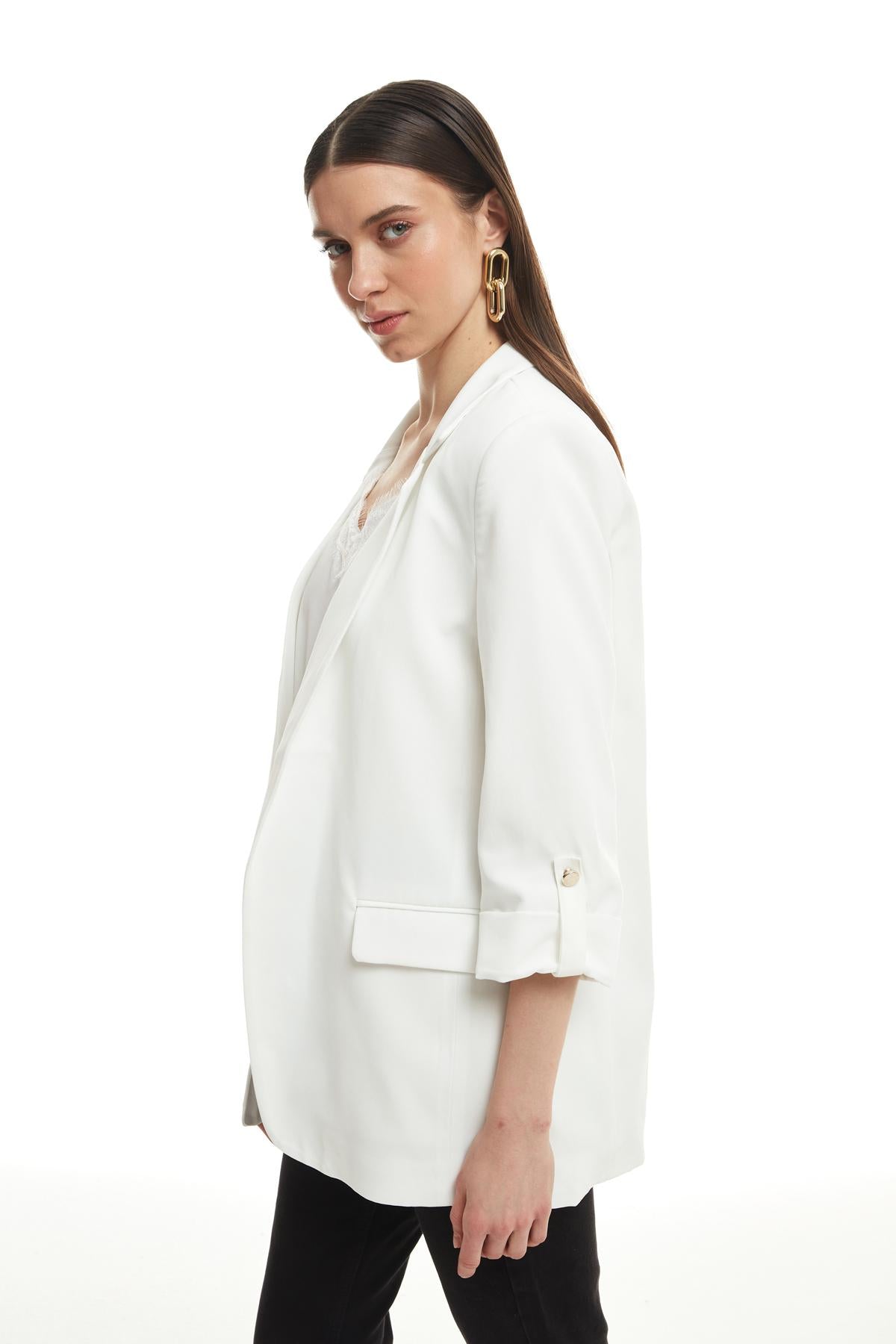 Duble Kol Blazer Ceket Ekru