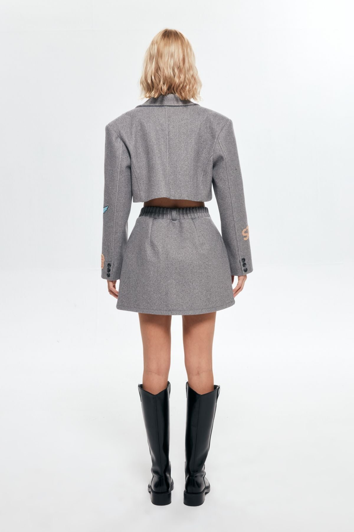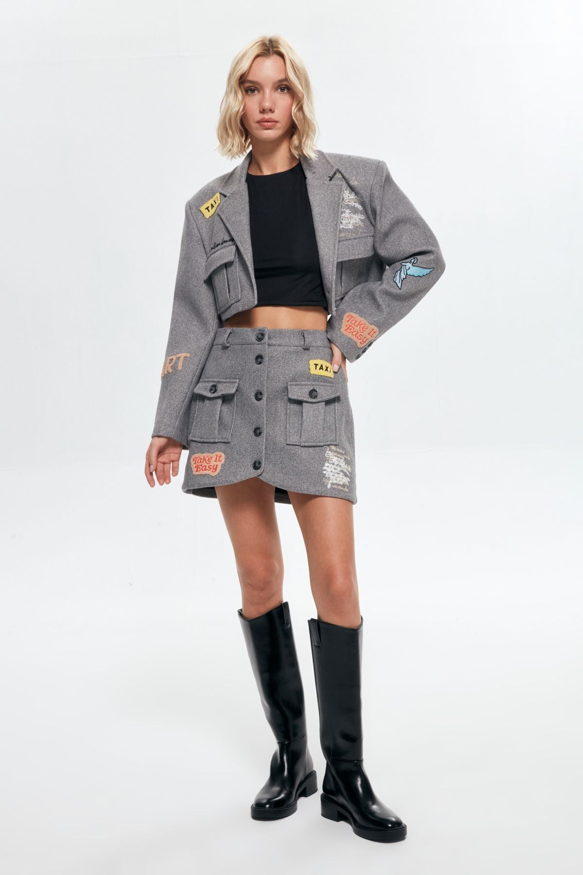 Düğme Detaylı Nakışlıı Kaşe Mini Etek Antrasit
