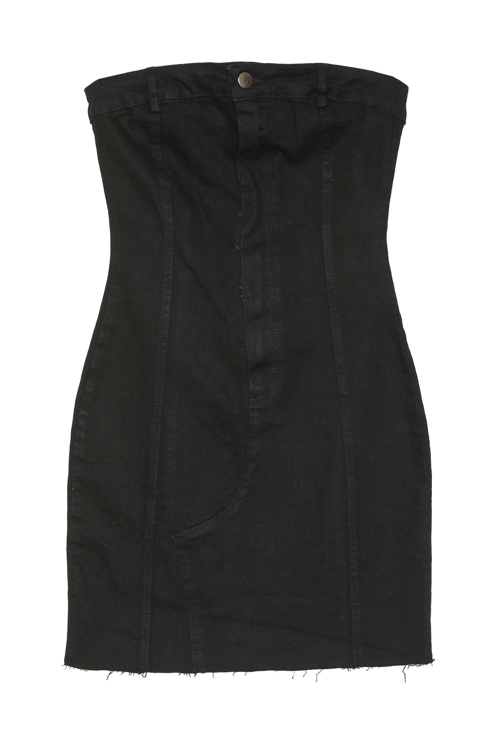 Düğme Detaylı Straplez Denim Mini Elbise Siyah