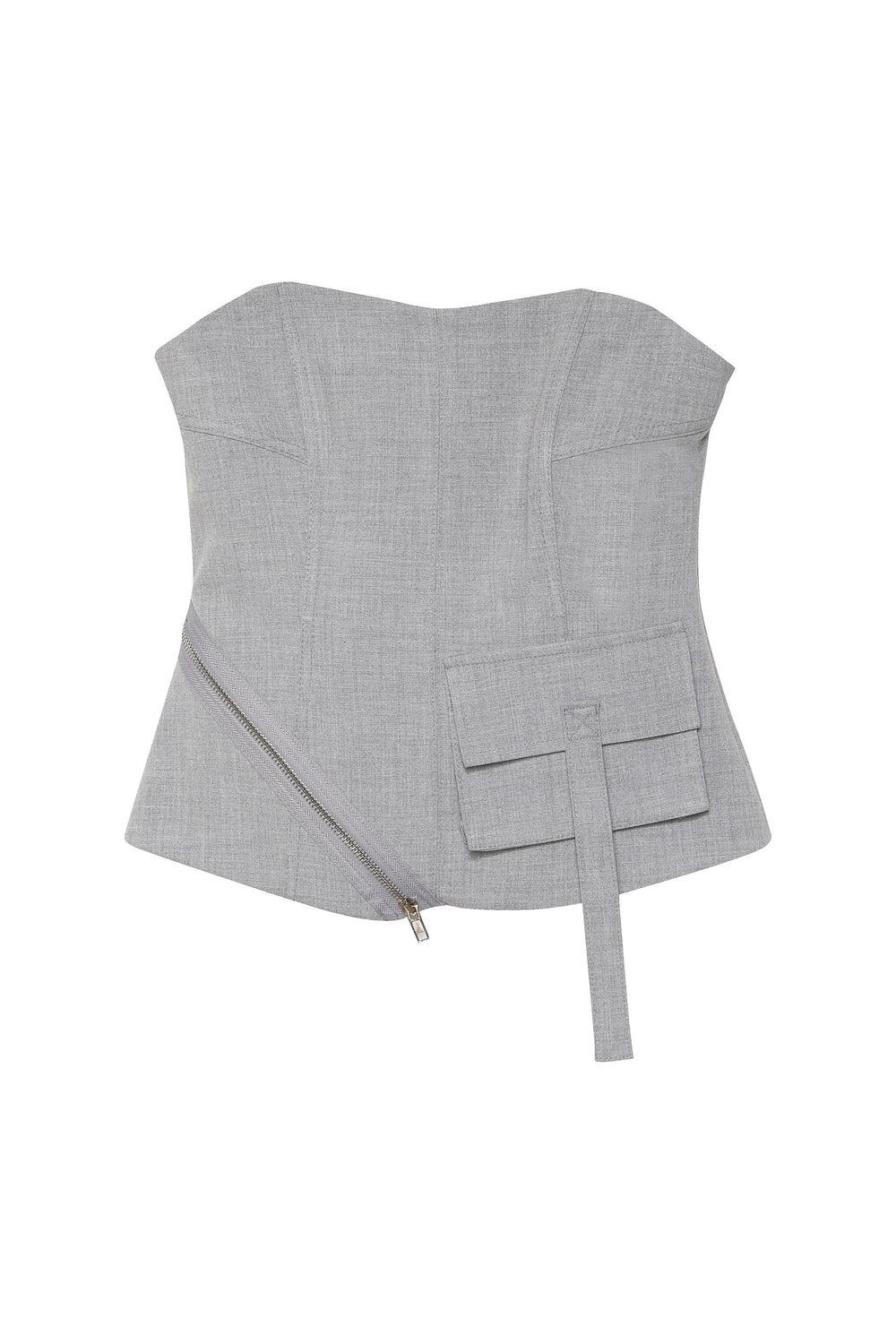 Fermuar Detaylı Straplez Bluz Açık Gri