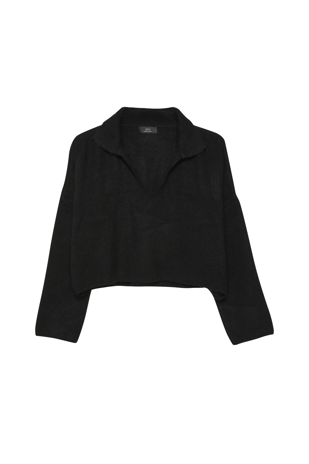 Polo yaka, uzun kol, rahat kesim, crop triko kazak.