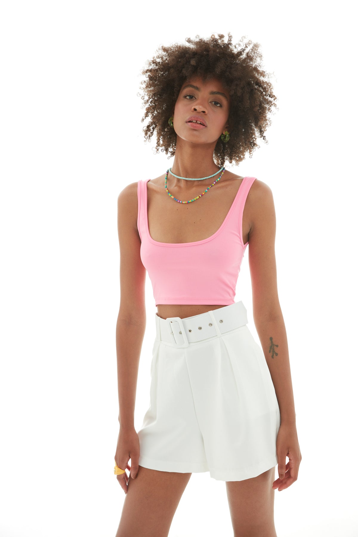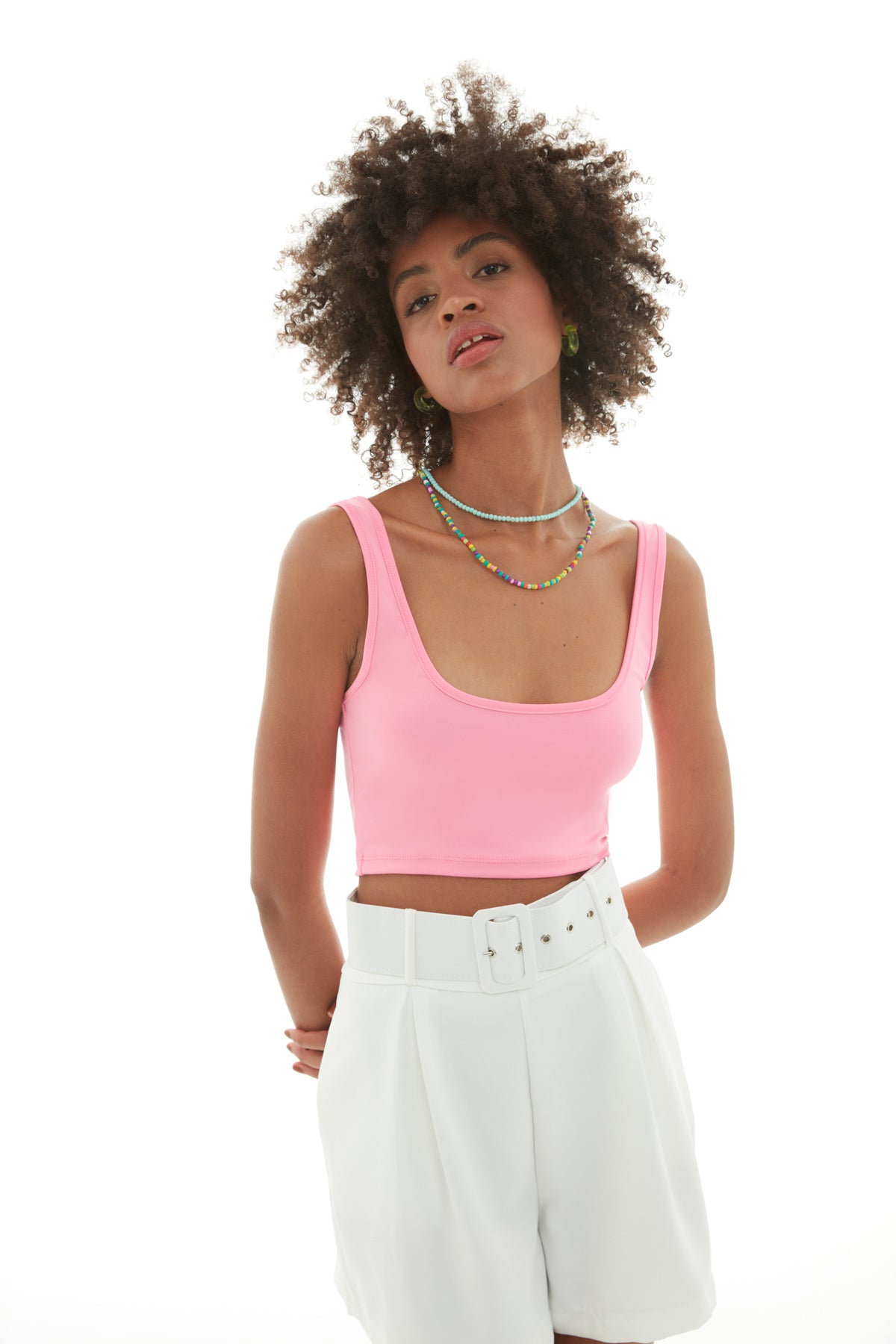 Kalın Askılı Crop Büstiyer Şeker Pembe