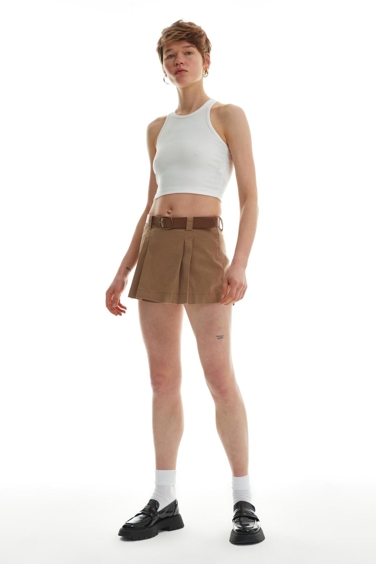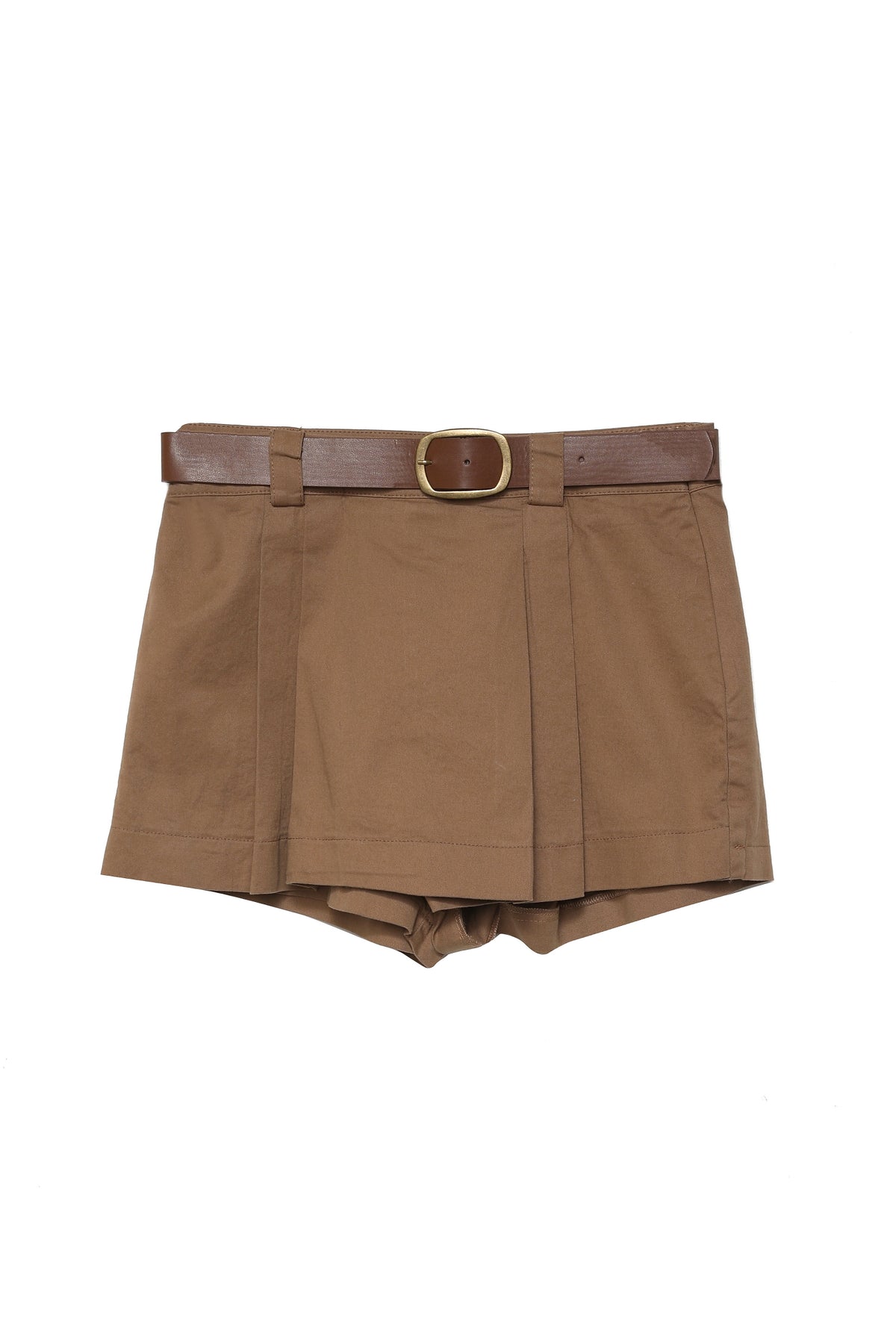 Kemer Detaylı Pileli Mini Şort Etek Camel