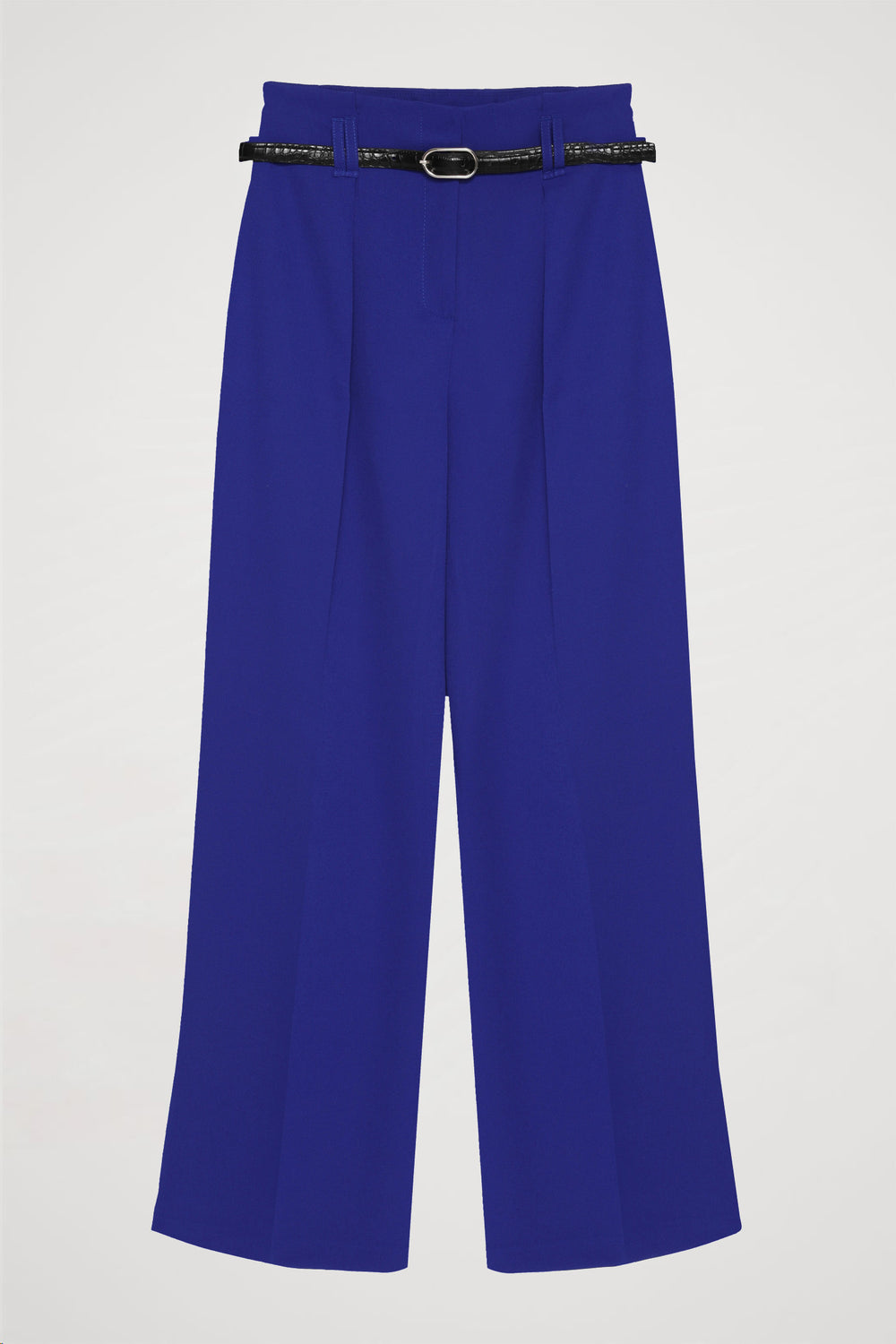 Kemer Detaylı Yüksek Bel Geniş Paça Pantolon Sax