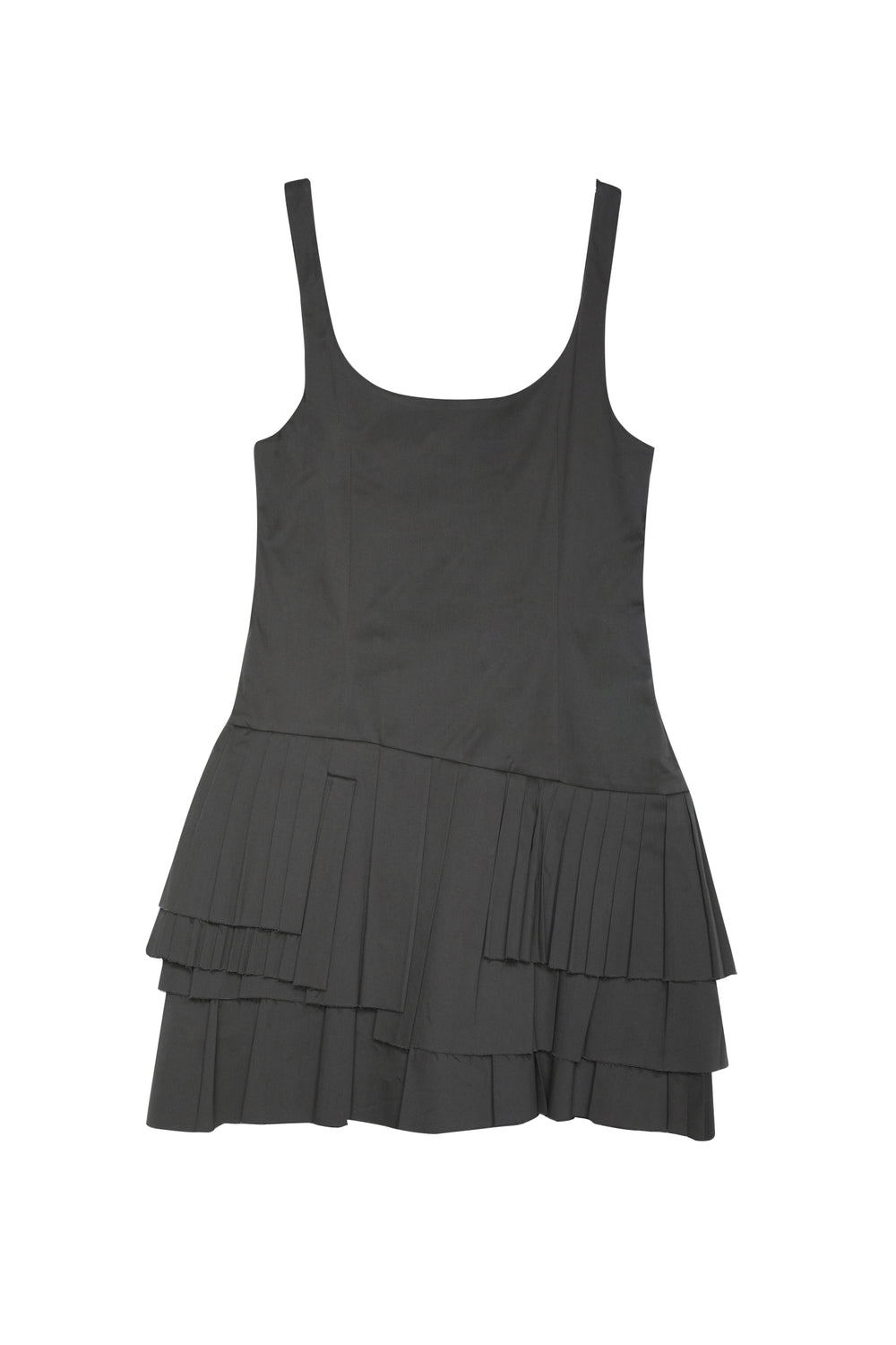 Kesik Detaylı Pileli Asimetrik Mini Elbise Haki