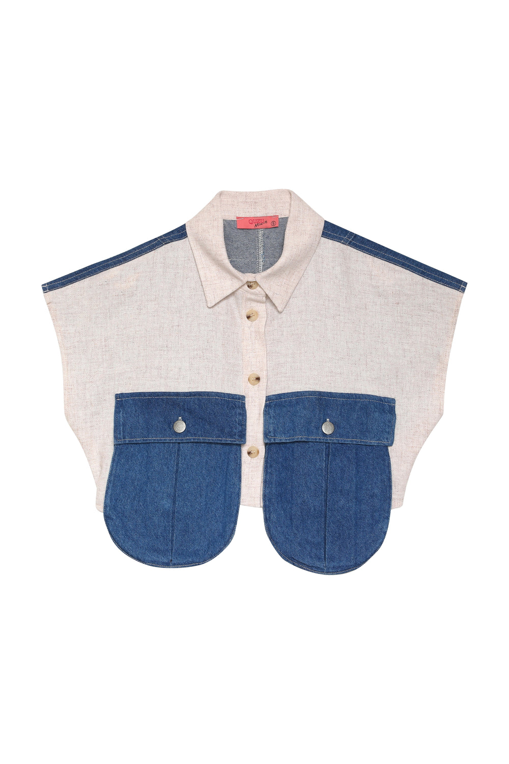 Match Detaylı Büyük Cepli Keten Gömlek Naturel