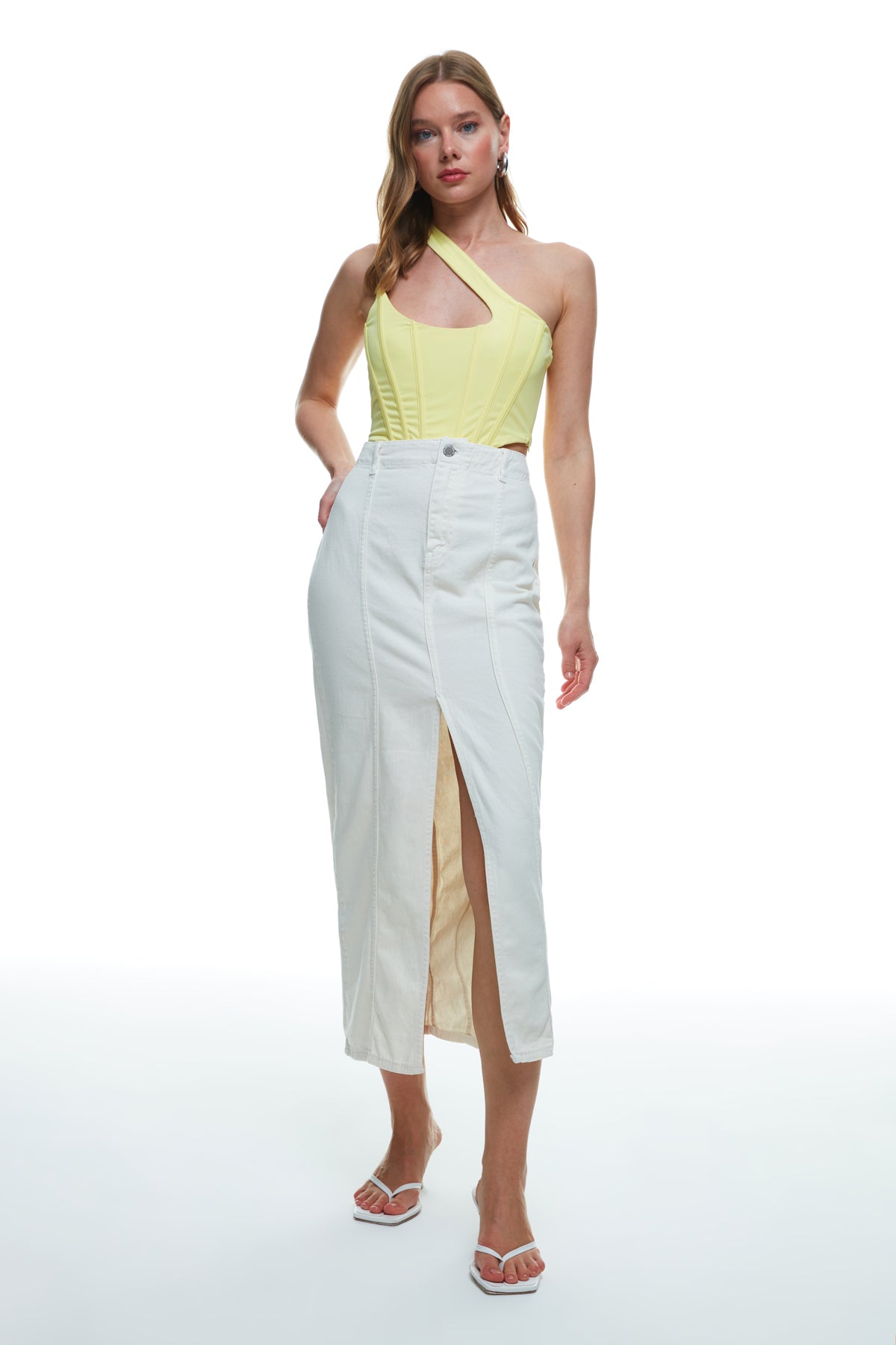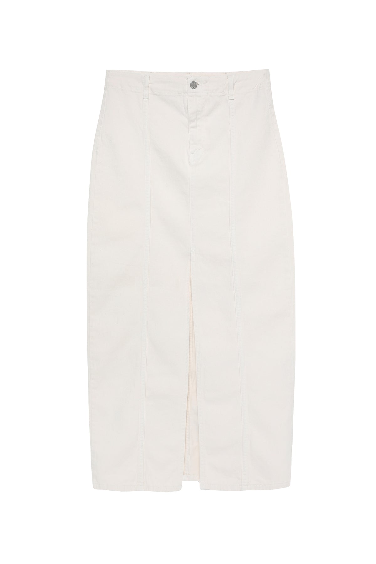 Önden Yırtmaç Detaylı Midi Etek Kemik