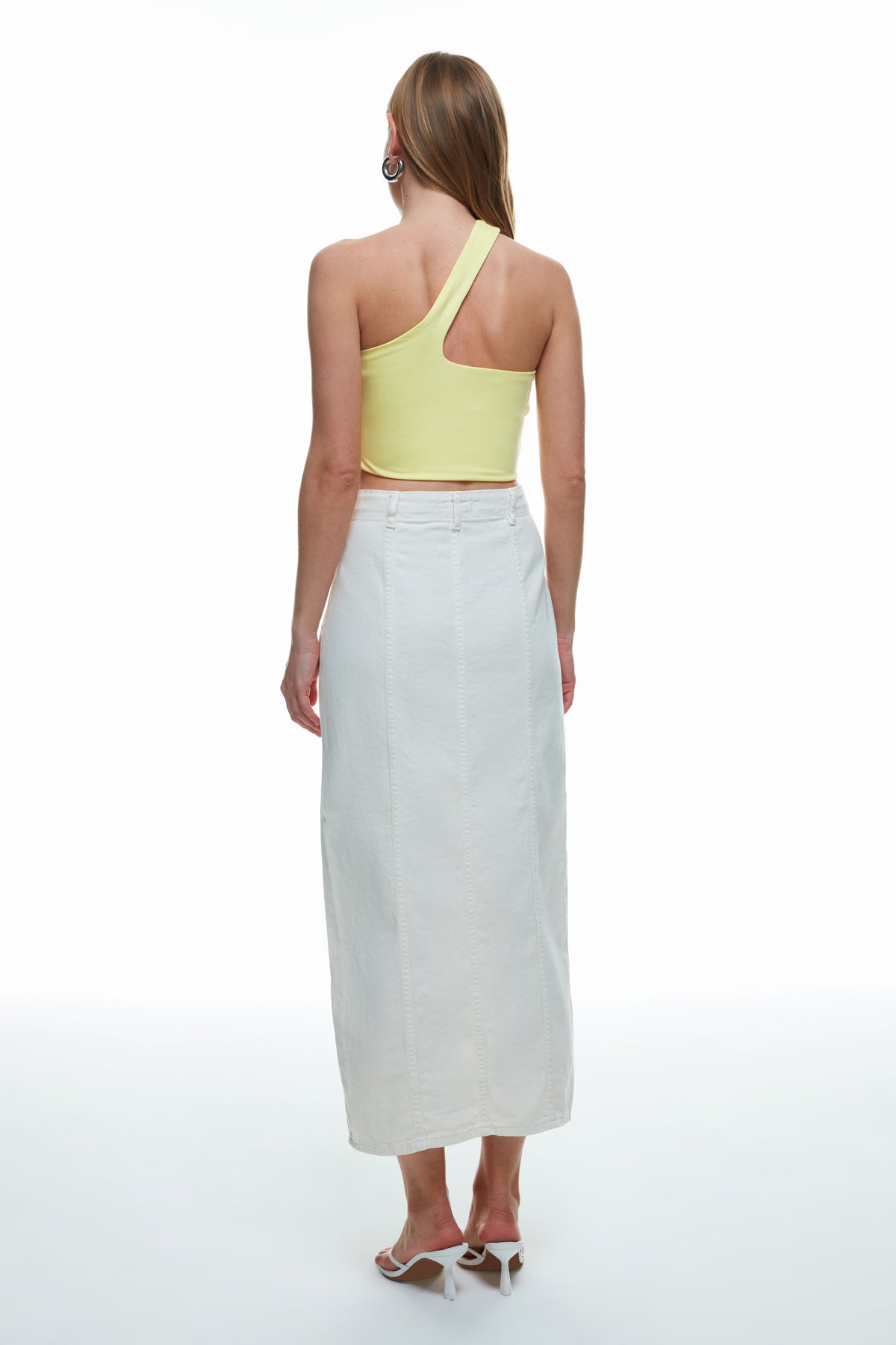 %100 Pamuklu, yüksek bel, önden derin yırtmaçlı, midi boy etek.