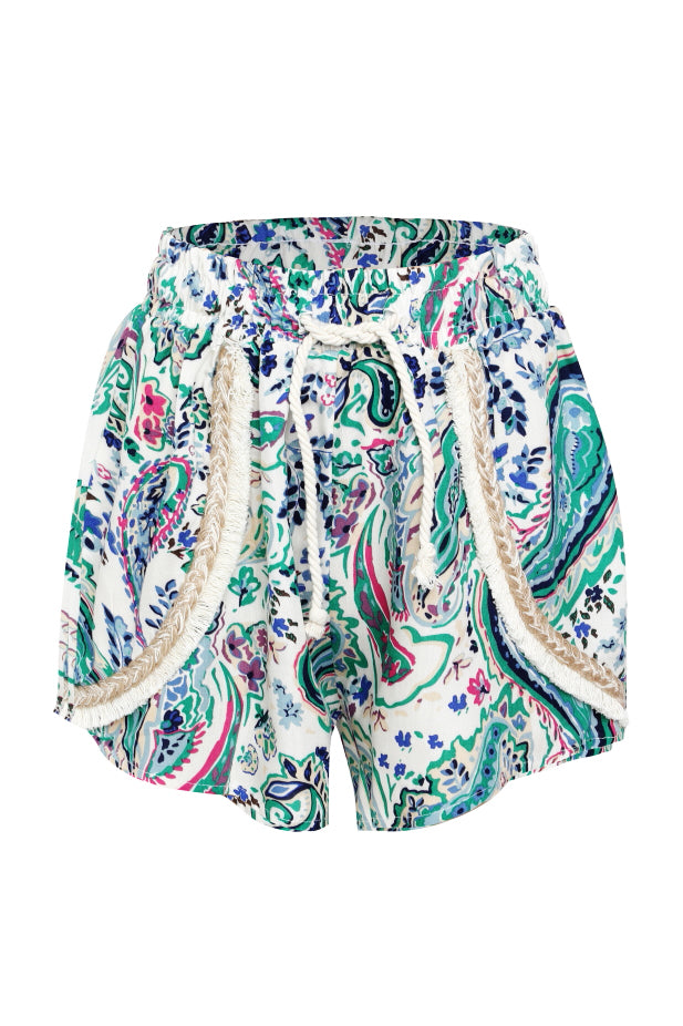 Mİnİ şort modelİ, desenİ ve vİskon İçerİklİ yumuşak dokusu İle hem konforlu hem de hoş bİr görünüm sunar. Desenlİ mİnİ şort modelİ, salaş kesİmİnİn yanı sıra püskül detayı İle de hoş bİr bütünlük yaratıyor. Belİ lastİklİ şort modelİnİn bağlama detayını bel yapına göre dİledİğİn gİbİ ayarlayabİlİrsİn.