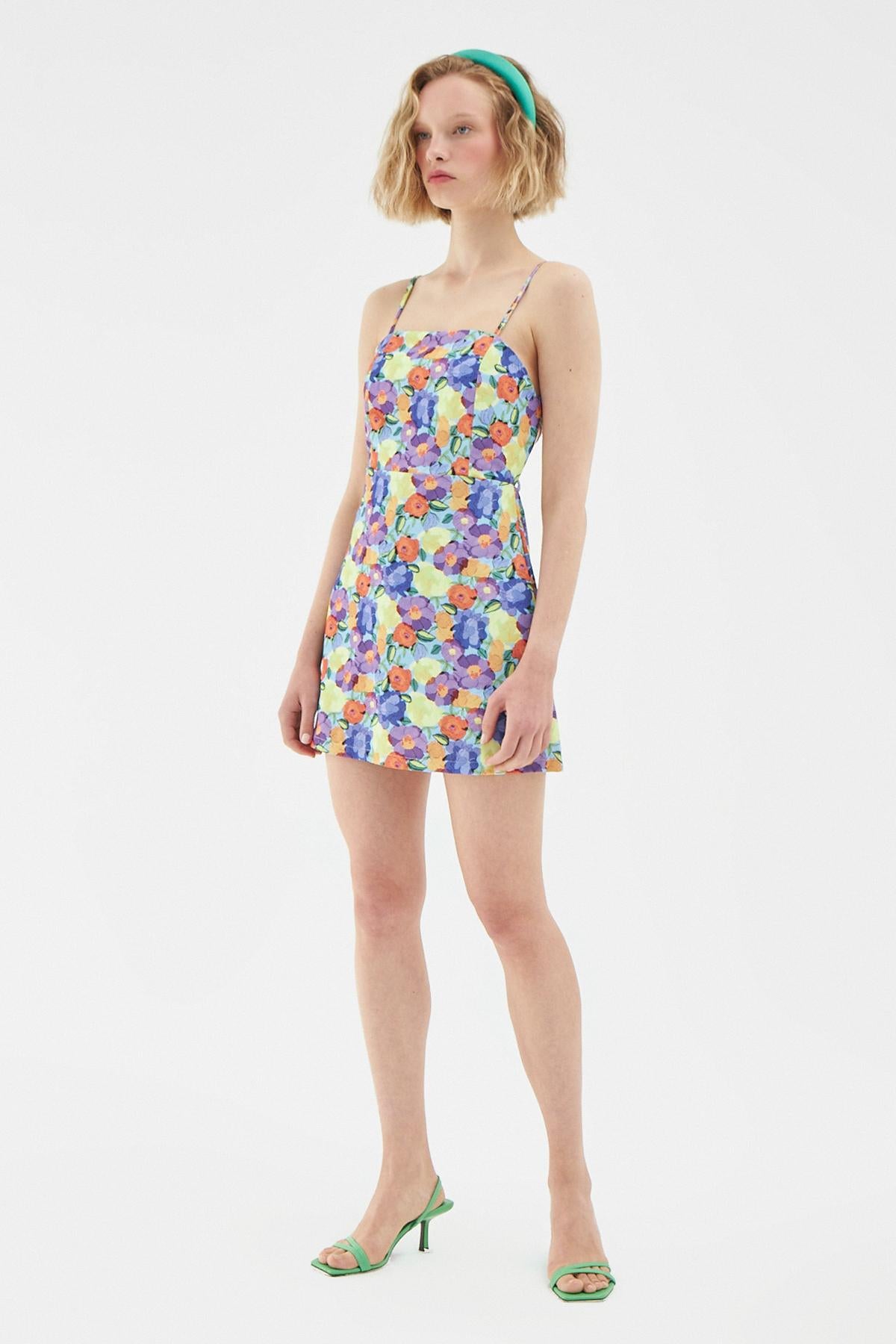 çİçek desenlİ elbİse modelİ İle mevsİmİn renklerİnİ ve canlılığını tek parçada kombİnİne yansıtabİlİrsİn. Sırt dekoltelİ elbİse modelİ baharın enerjİsİnİ yansıtan renk ve desen tasarımı İle mevsİmde favorİ parçan olmaya aday. Askılı mİnİ elbİse modelİ desenİ İle hem sportİf hem de sırt dekoltesİ ve İnce İp bağlaması İle çekİcİ bİr görünüm sunuyor. İçİ şortlu olması İle konforlu gİyİm sunan arkası fermuarlı elbİse modelİ İle kıpır kıpır bİr görünüm oluştabİlİrsİn.