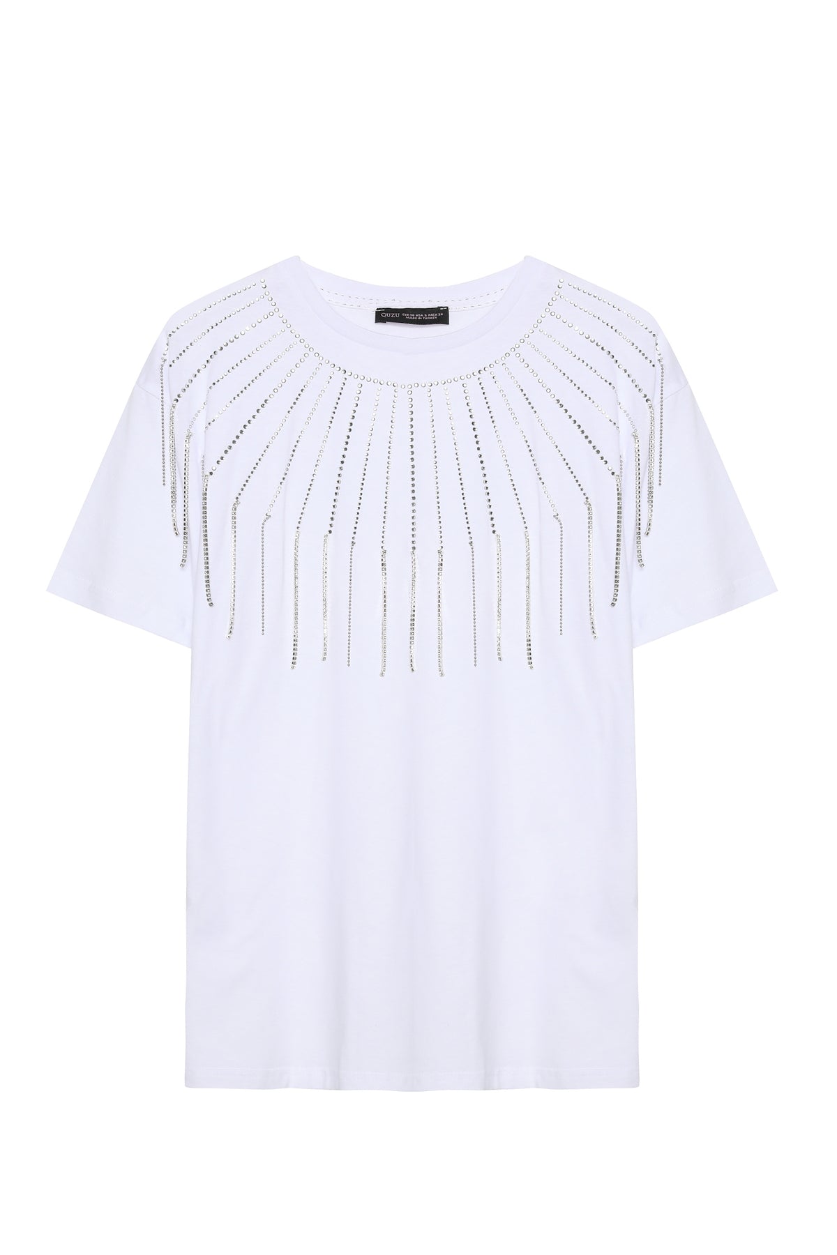 Taş Aksesuarlı Bisiklet Yaka Tişört Beyaz