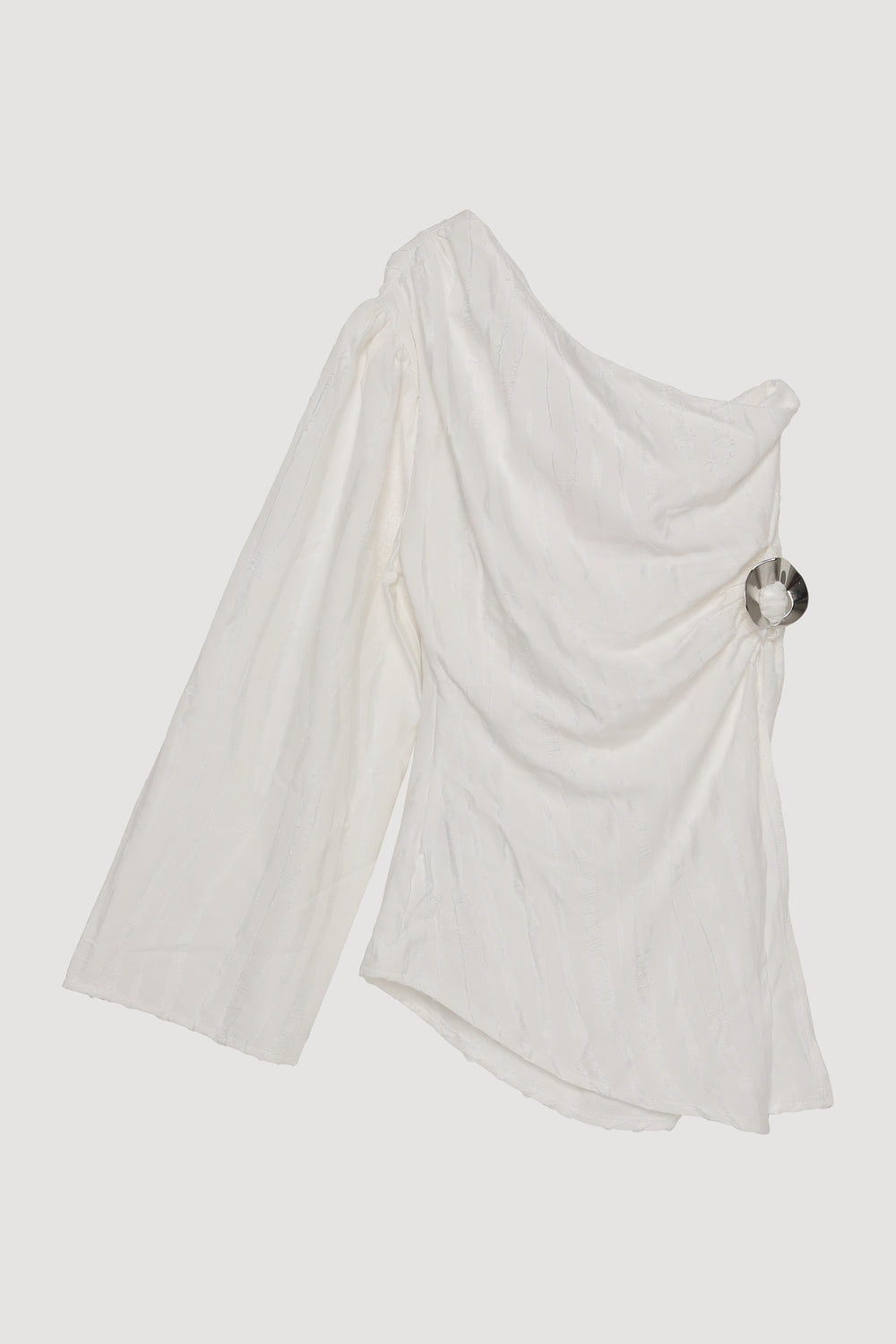 Toka Aksesuarlı Tek Omuz Asimetrik Bluz Ekru