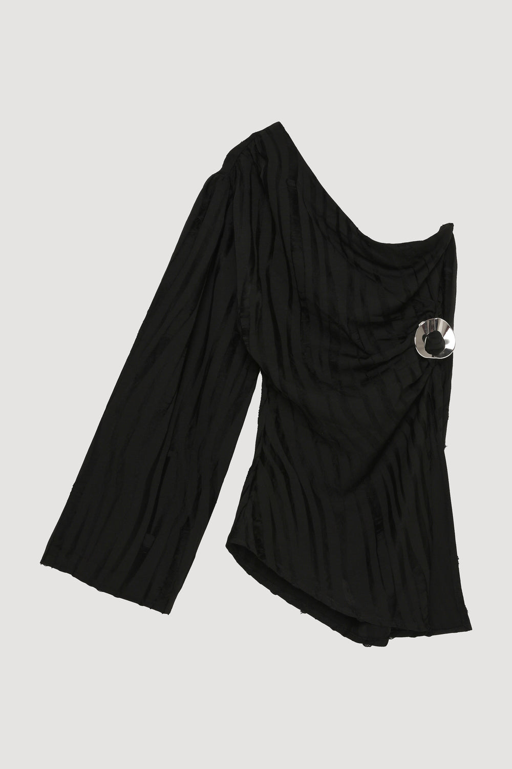 Toka Aksesuarlı Tek Omuz Asimetrik Bluz Siyah