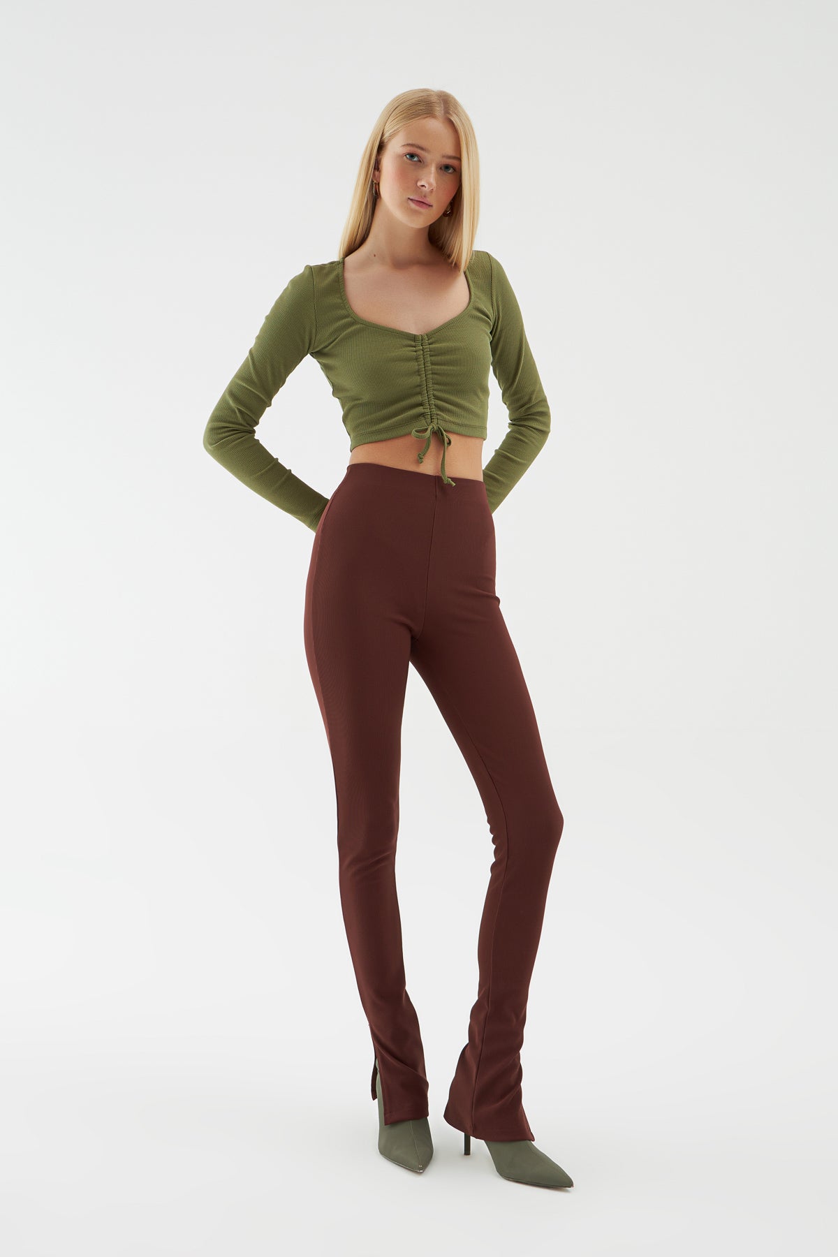 Yanı Yırtmaçlı Pantolon Kahverengi