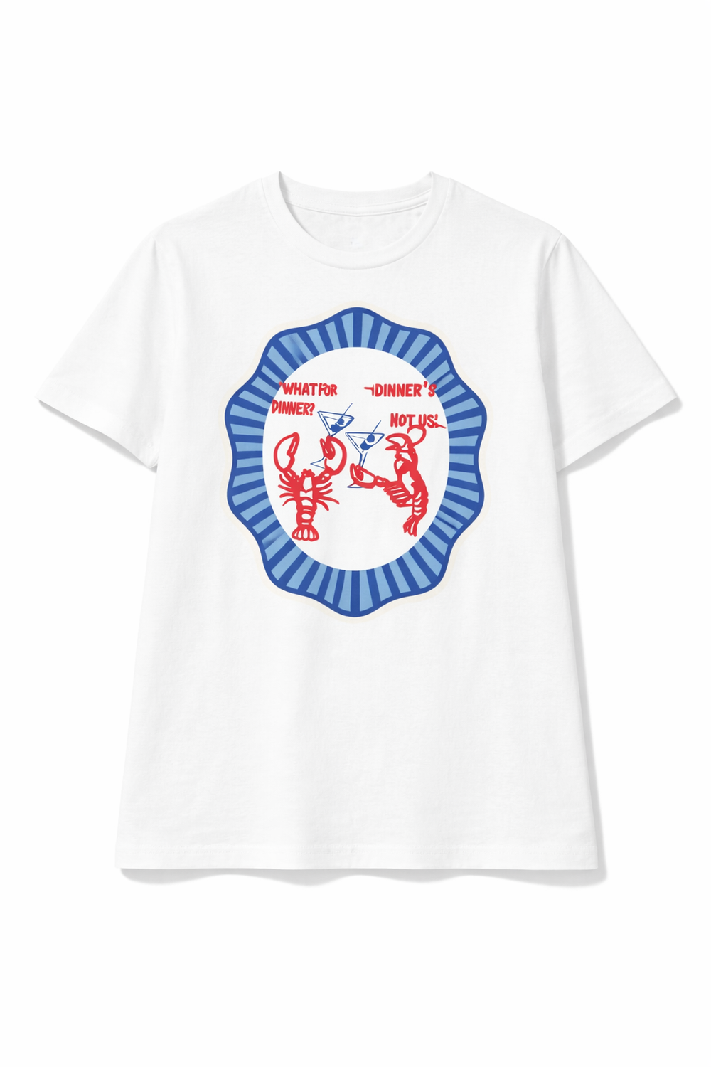 Pasta Lover Baskılı Oversize Tişört Beyaz