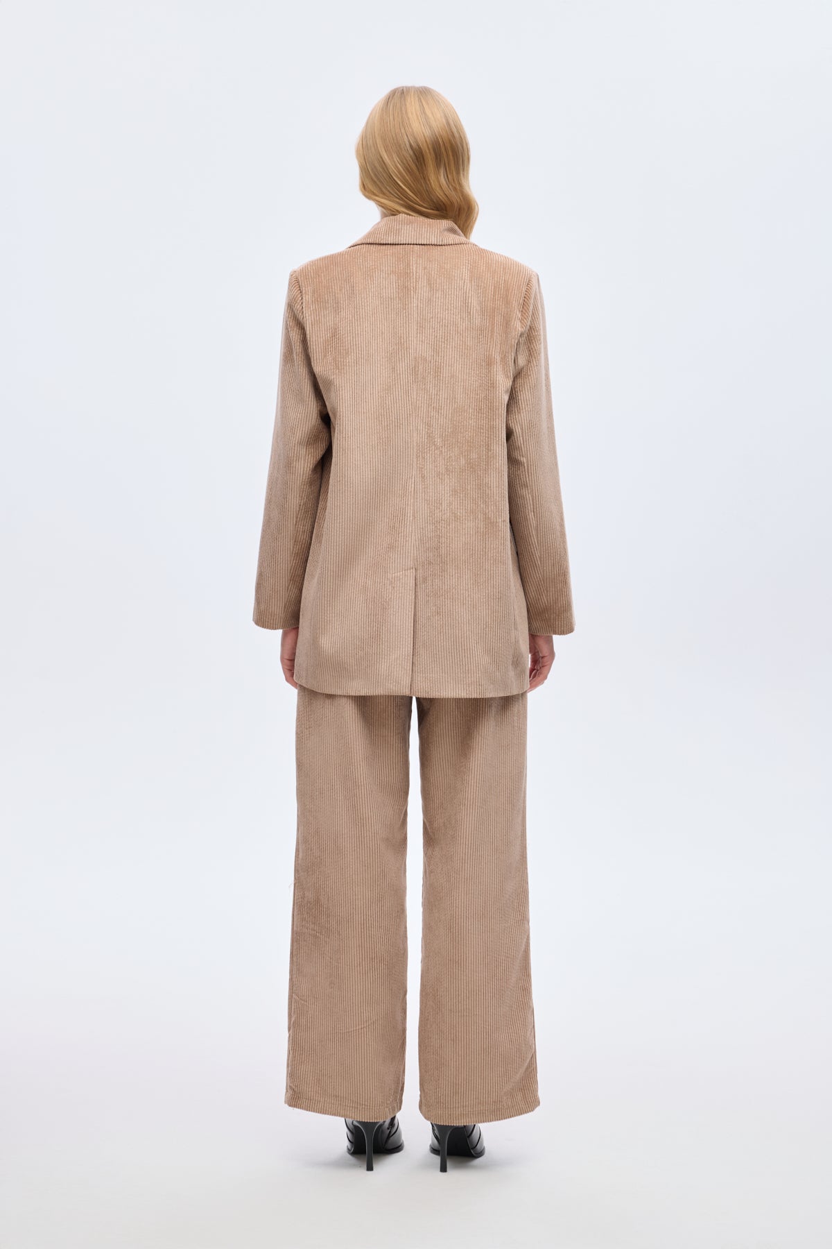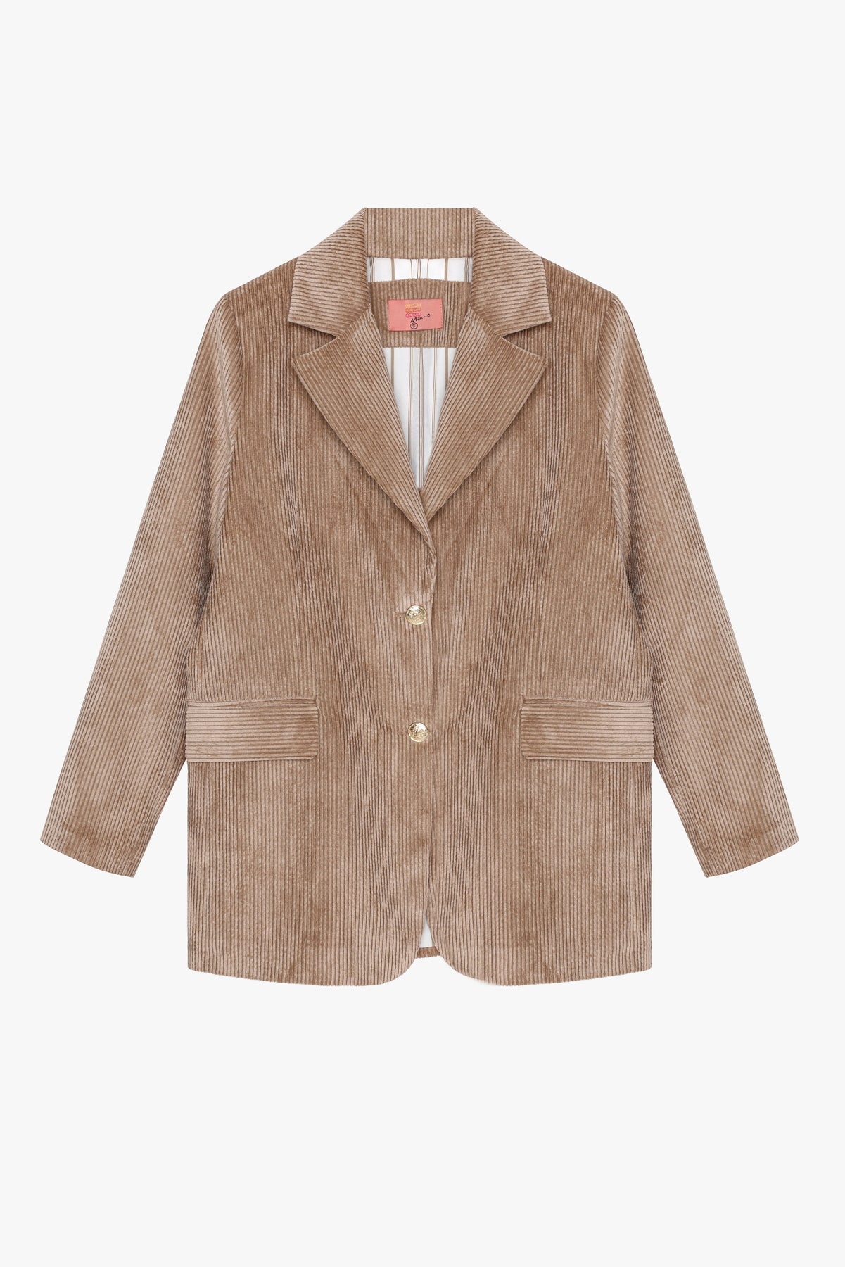 Broş Aksesuarlı Kadife Blazer Ceket Camel