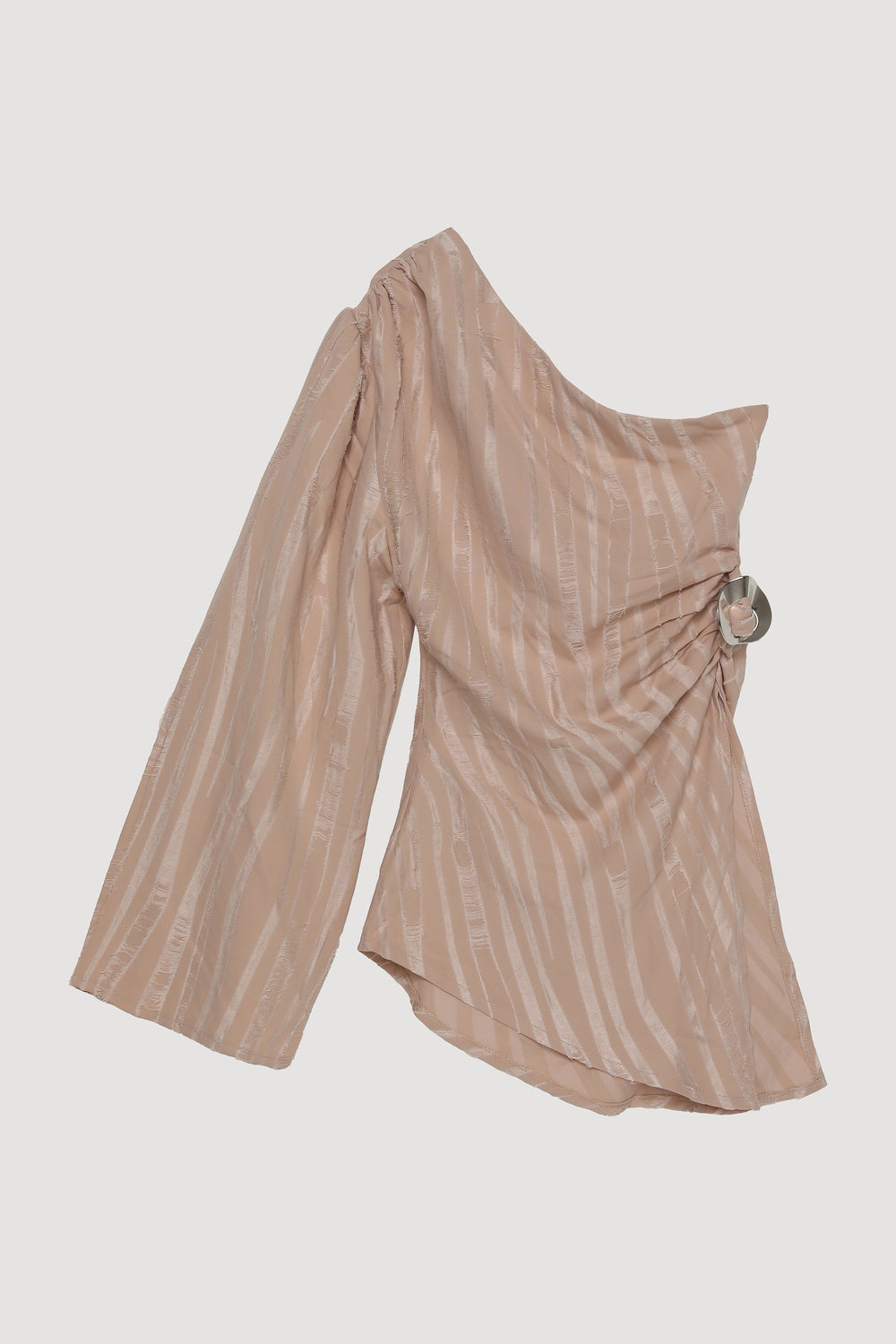 Toka Aksesuarlı Tek Omuz Asimetrik Bluz Bej