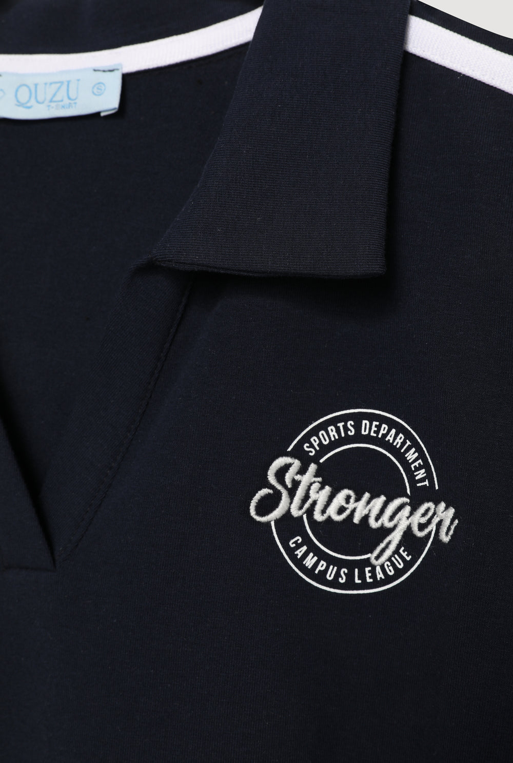 Polo Yaka Baskılı Crop Tişört Lacivert