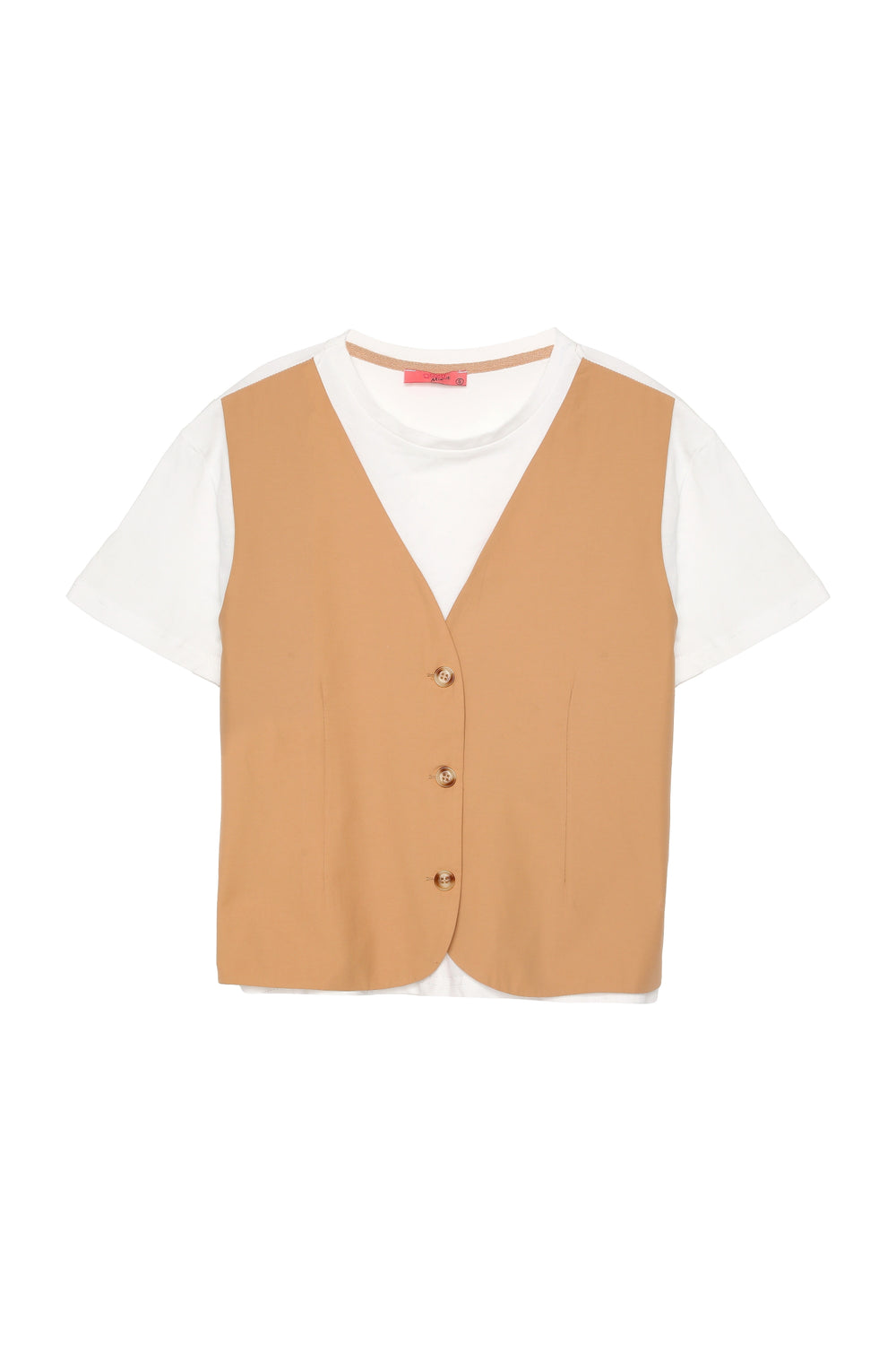 Yelek Detaylı Tişört Camel
