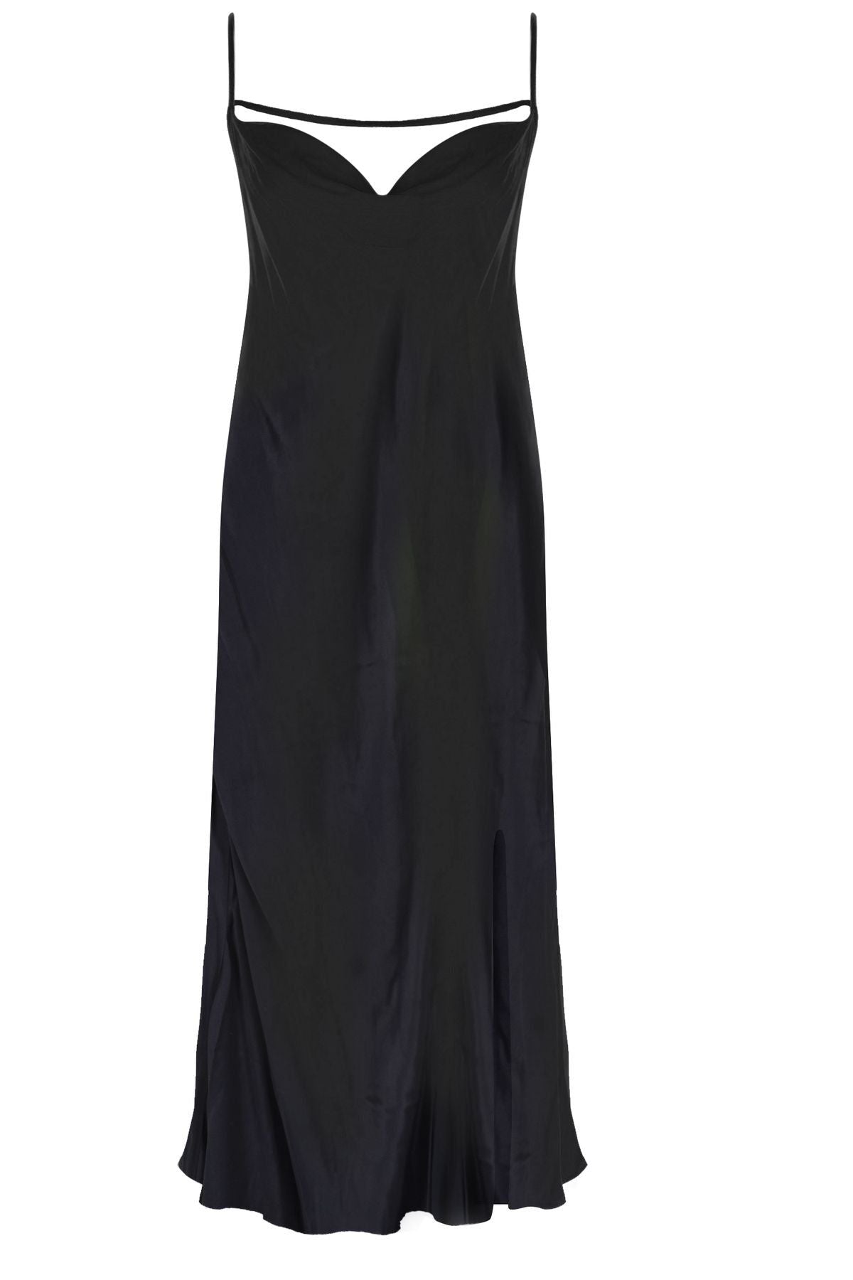 Degaje Yaka Yırtmaçlı Midi Boy Elbise Siyah
