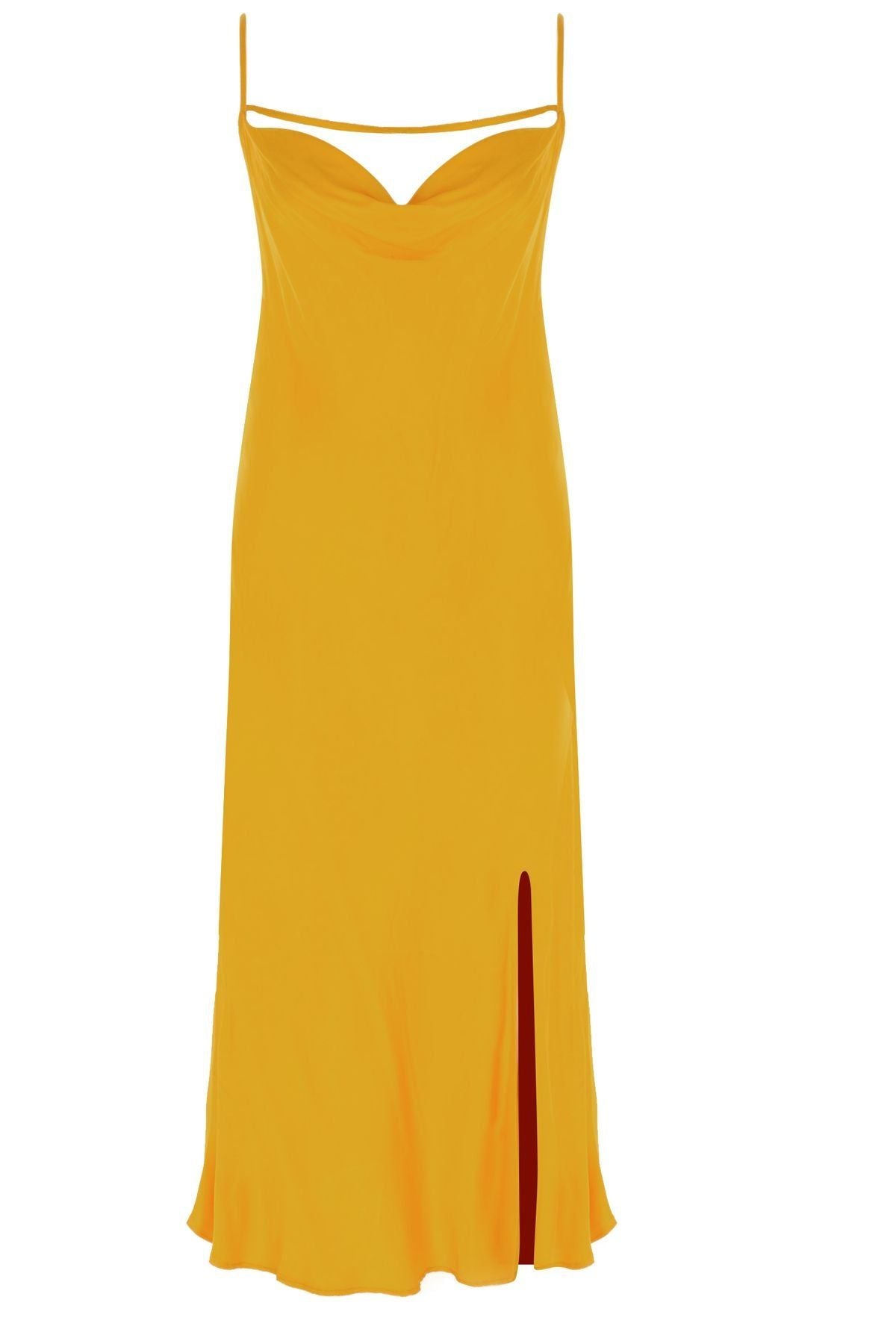 Degaje Yaka Yırtmaçlı Midi Boy Elbise Turuncu