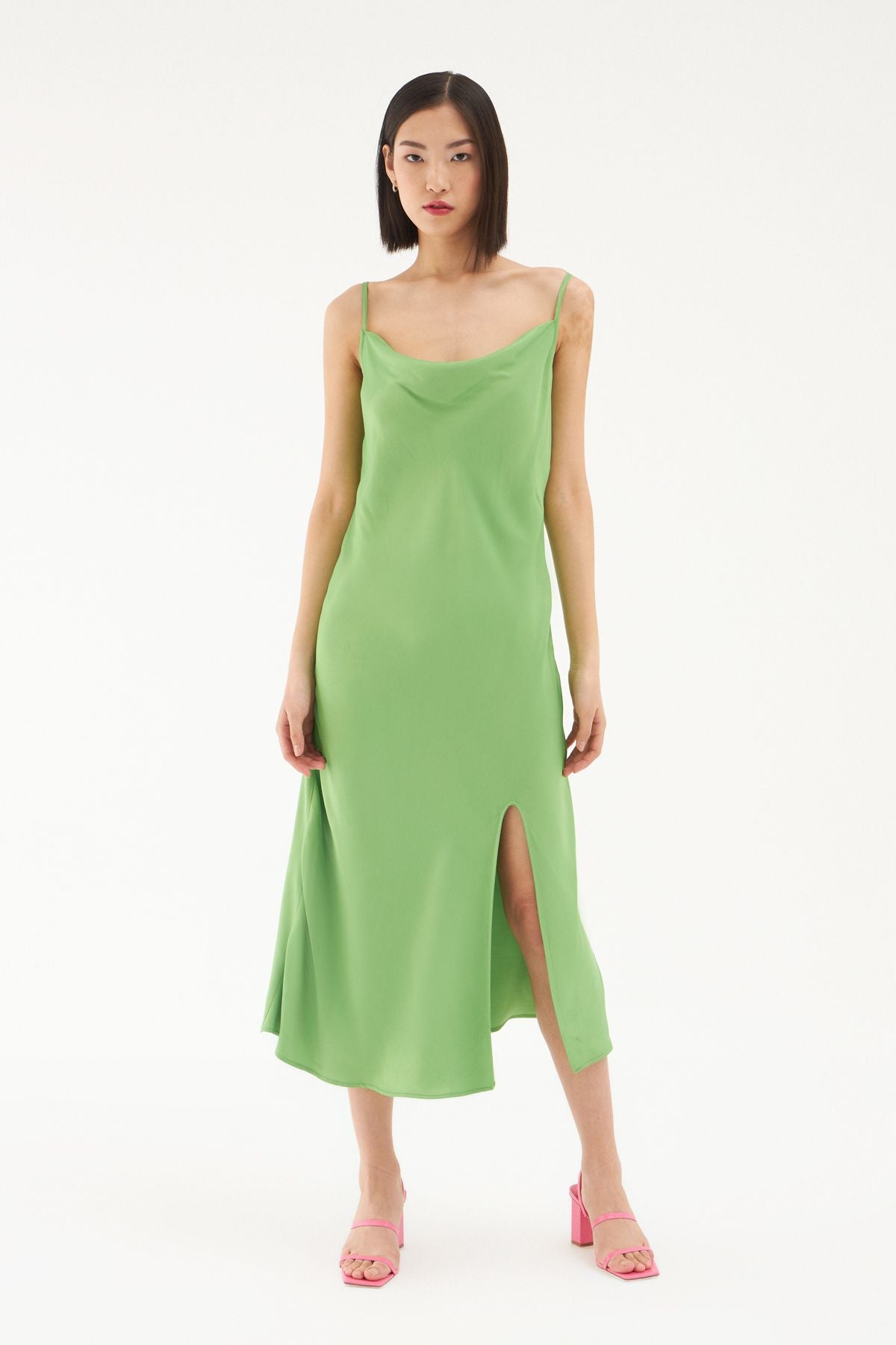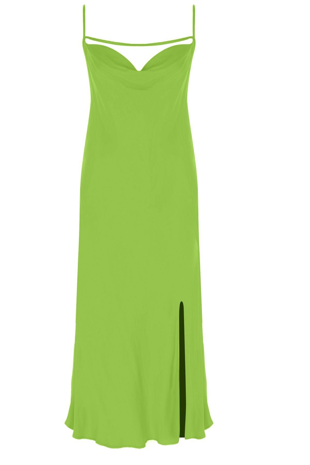 Degaje Yaka Yırtmaçlı Midi Boy Elbise Yeşil