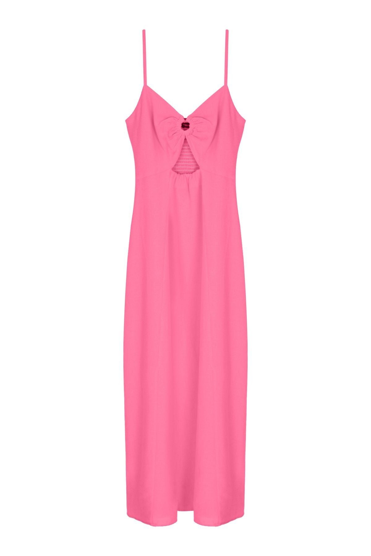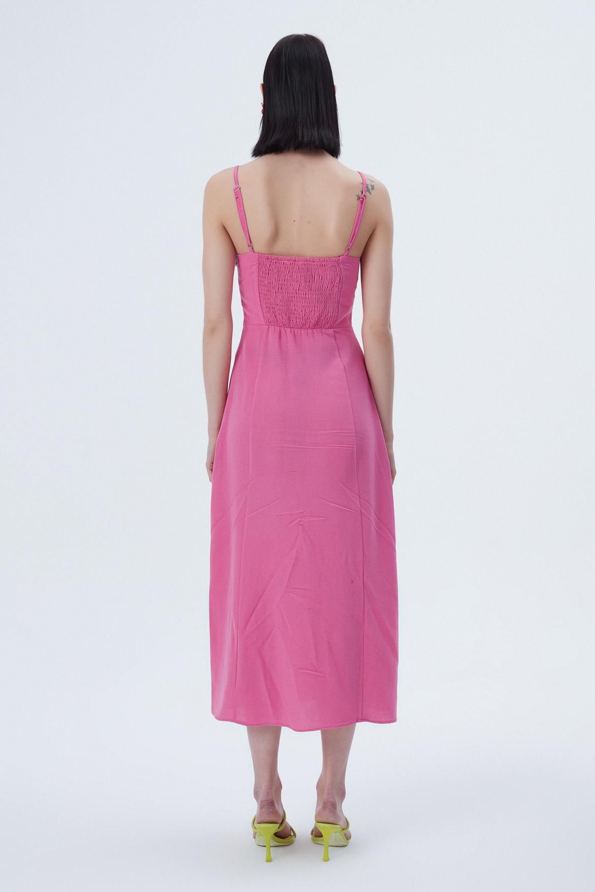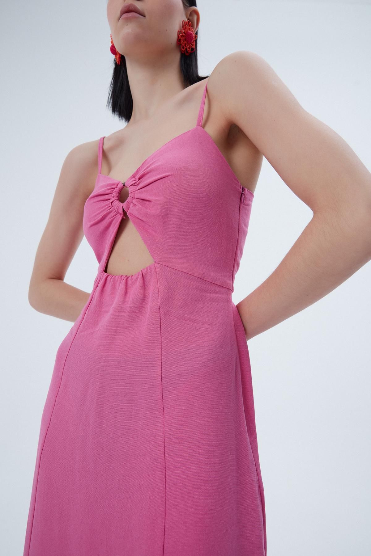 Göğüs Dekolteli Askılı Uzun Elbise Pembe