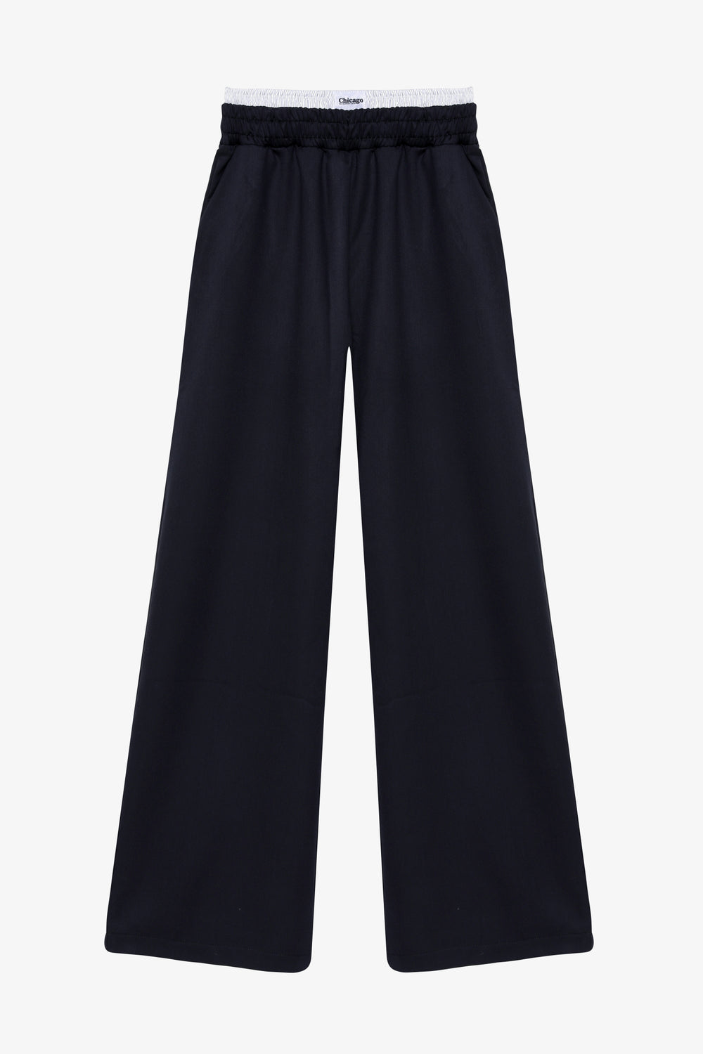 Çift Bel Detaylı Lastikli Bol Paça Pantolon Lacivert