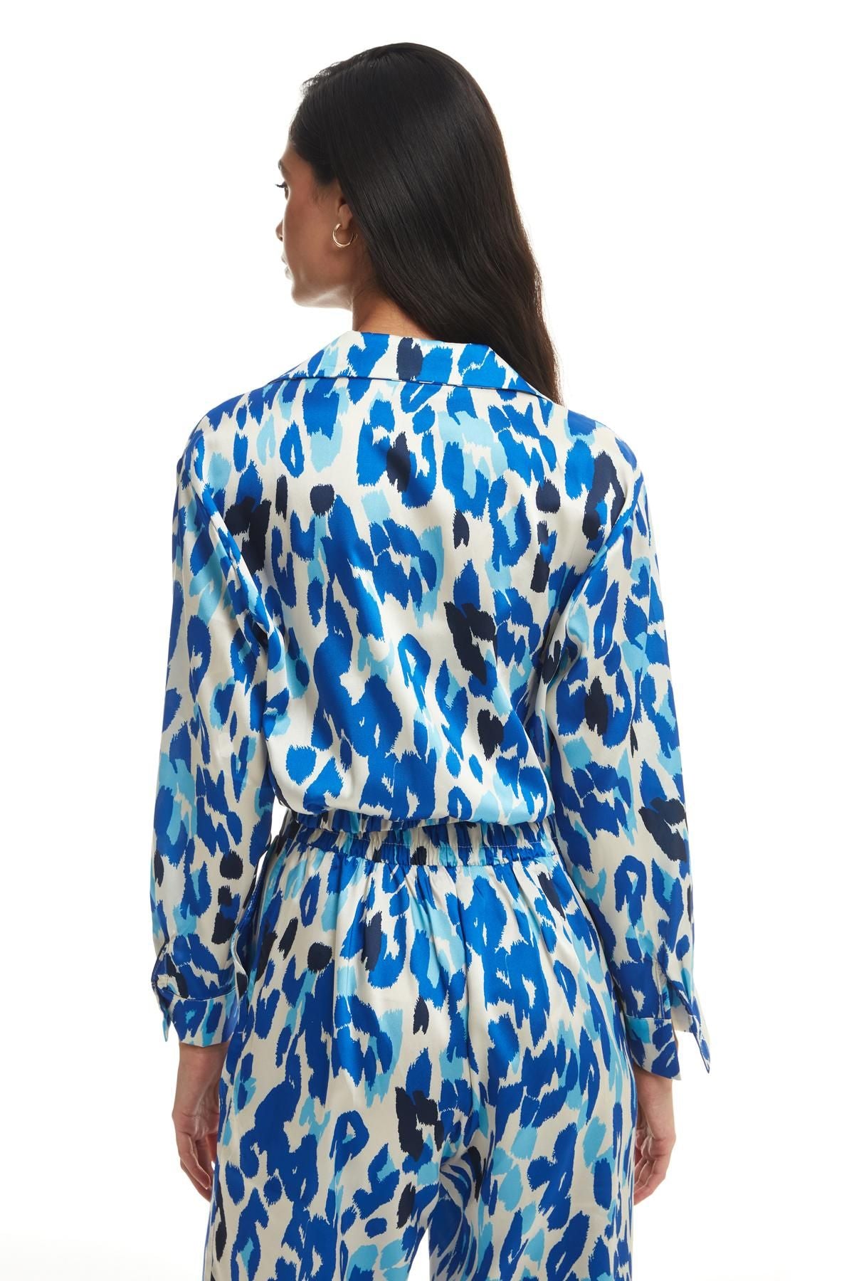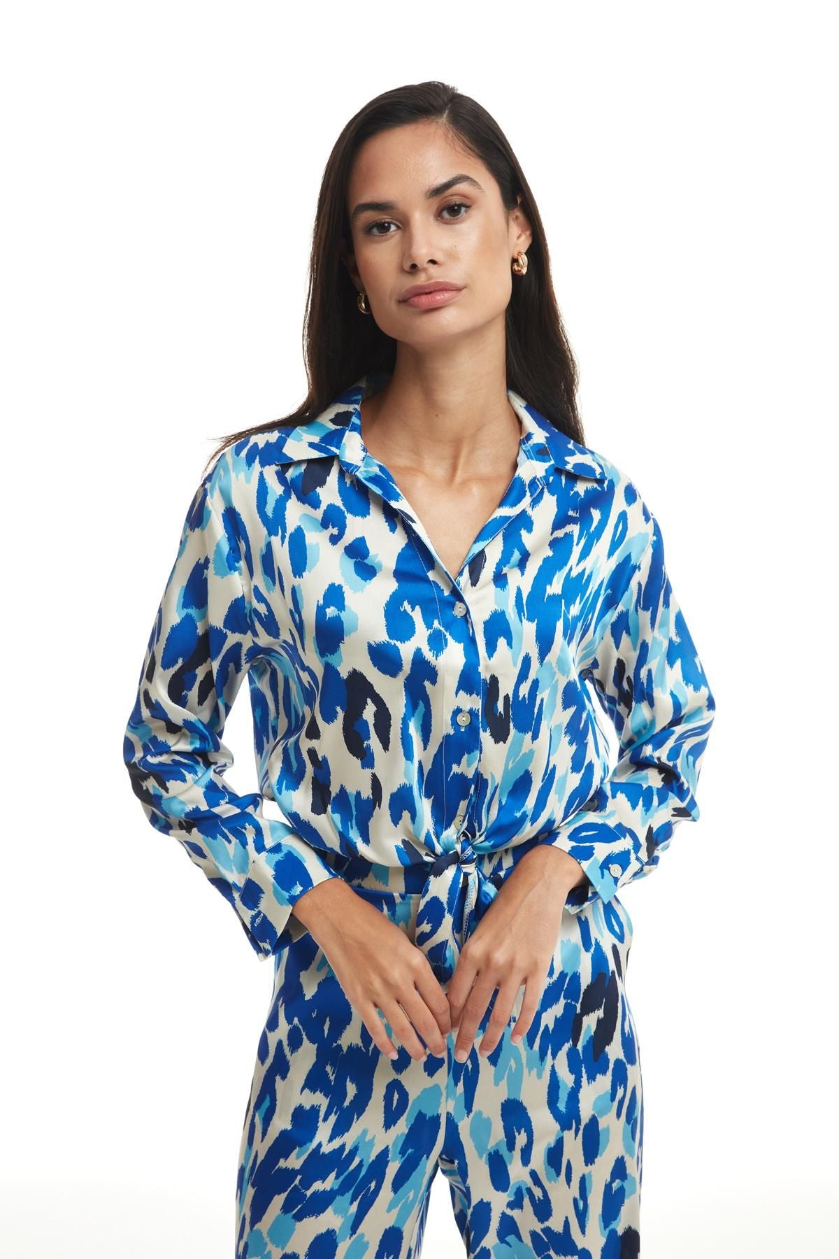 Uzun kollu, düğmeli, önü bağlamalı, desenli, crop gömlek.