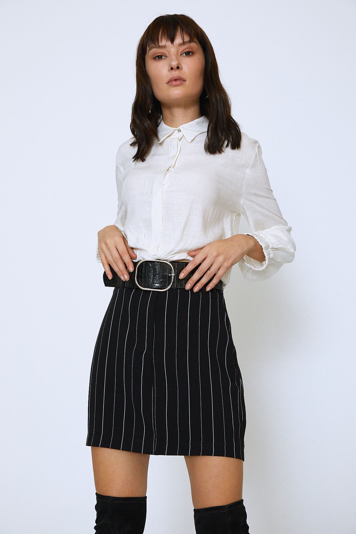 Lastikli Kol Beli Düğümlü Gömlek Ekru