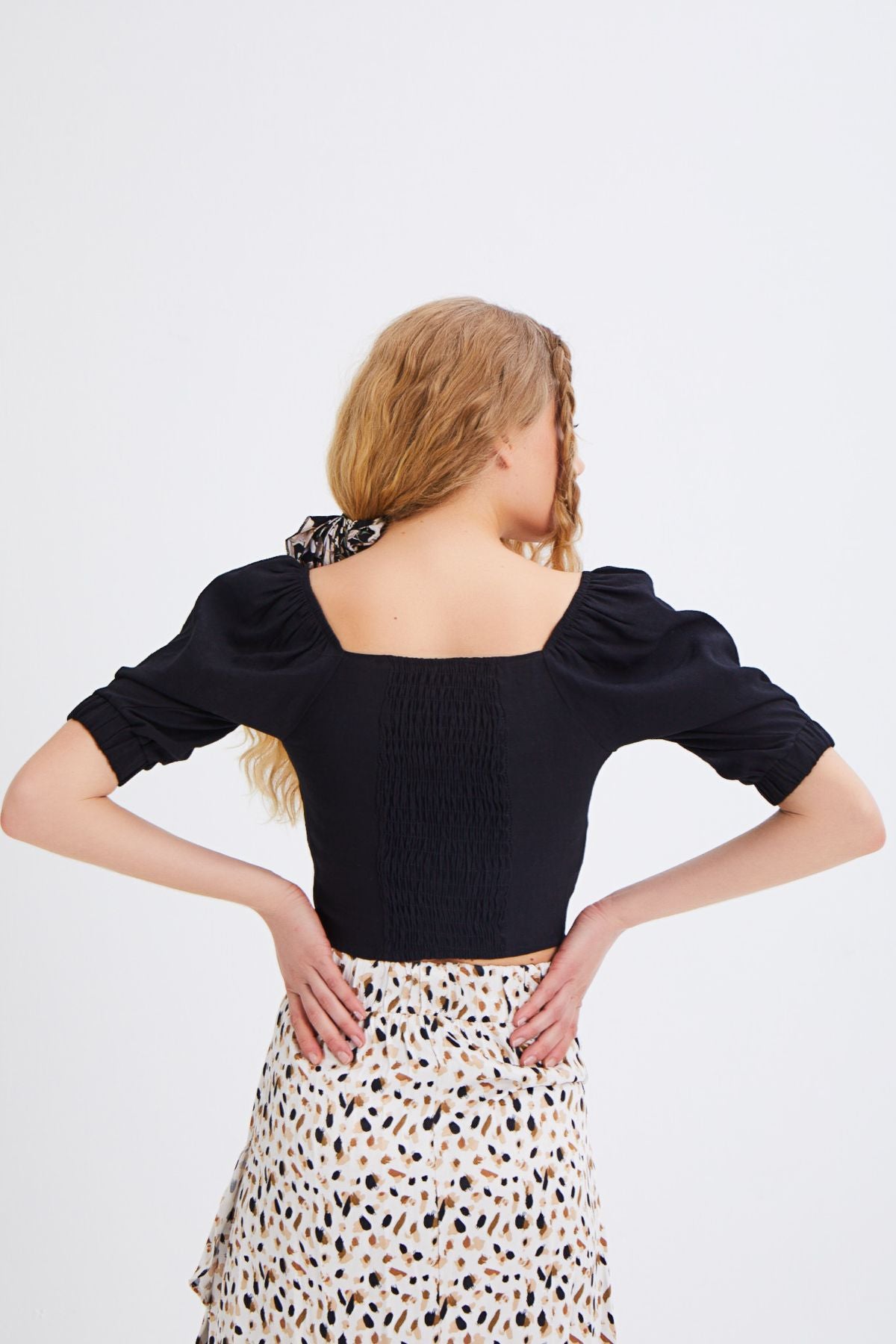 Balon Kol Gipe Detaylı Bluz Siyah