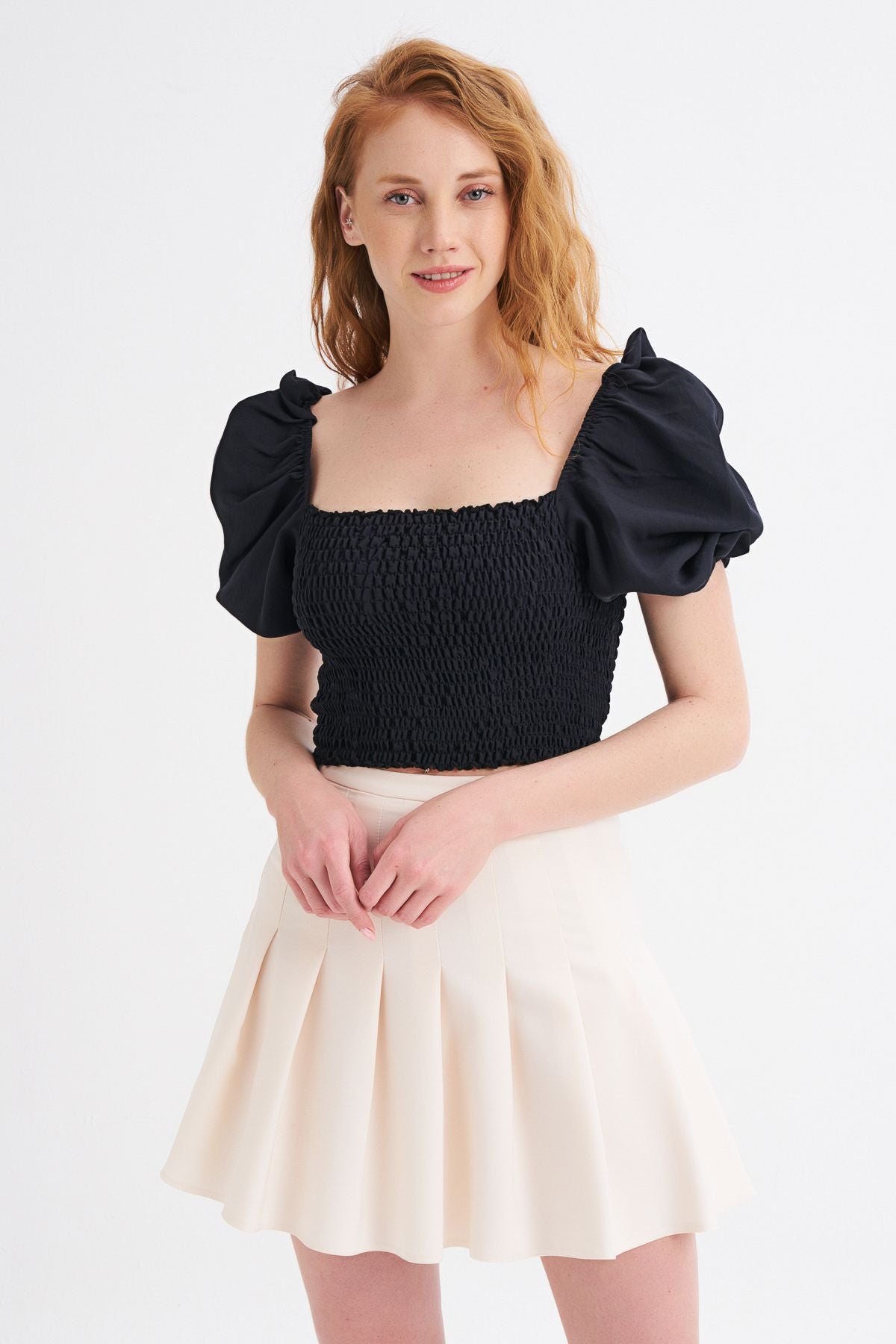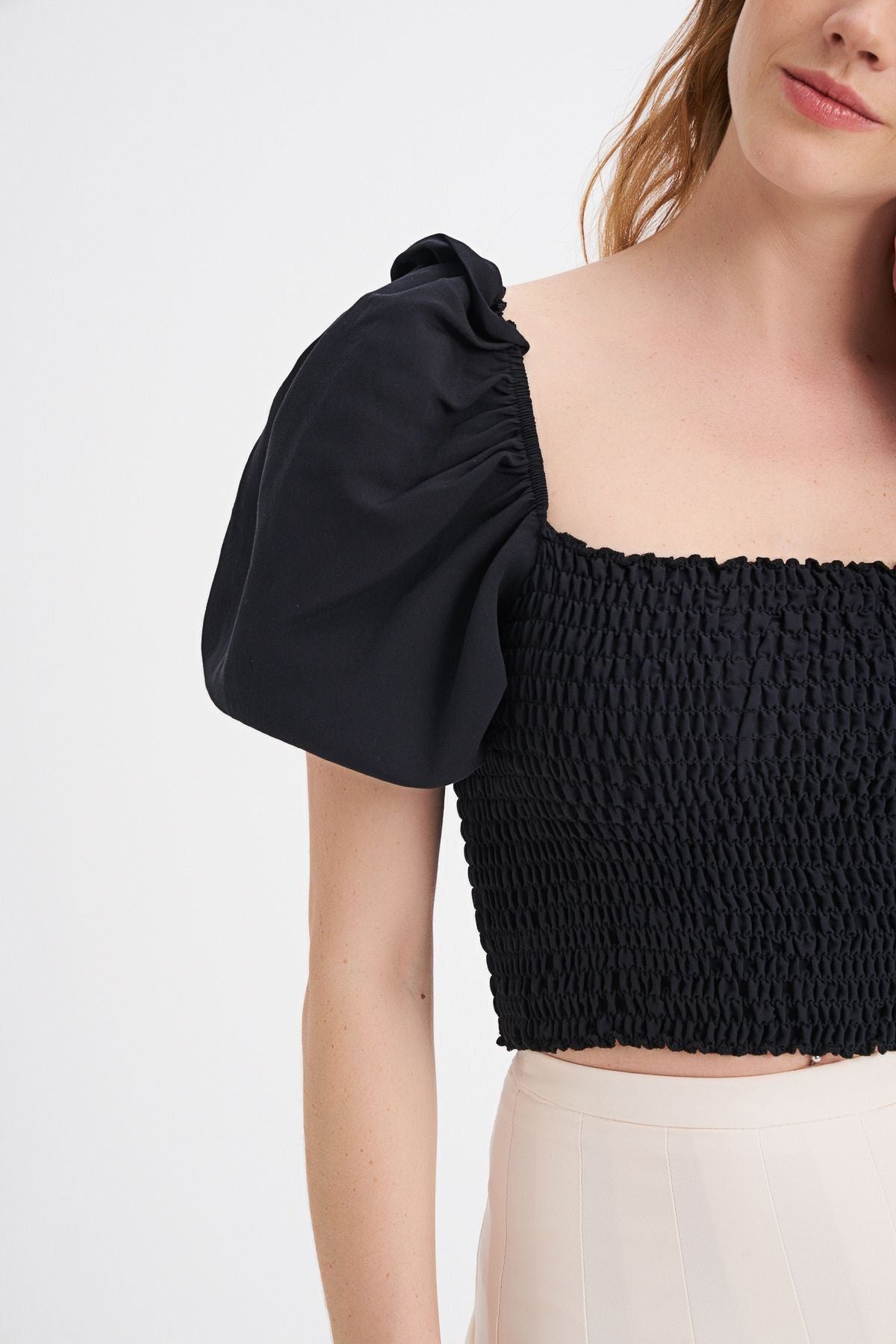Balon Kol Gipeli Bluz Siyah