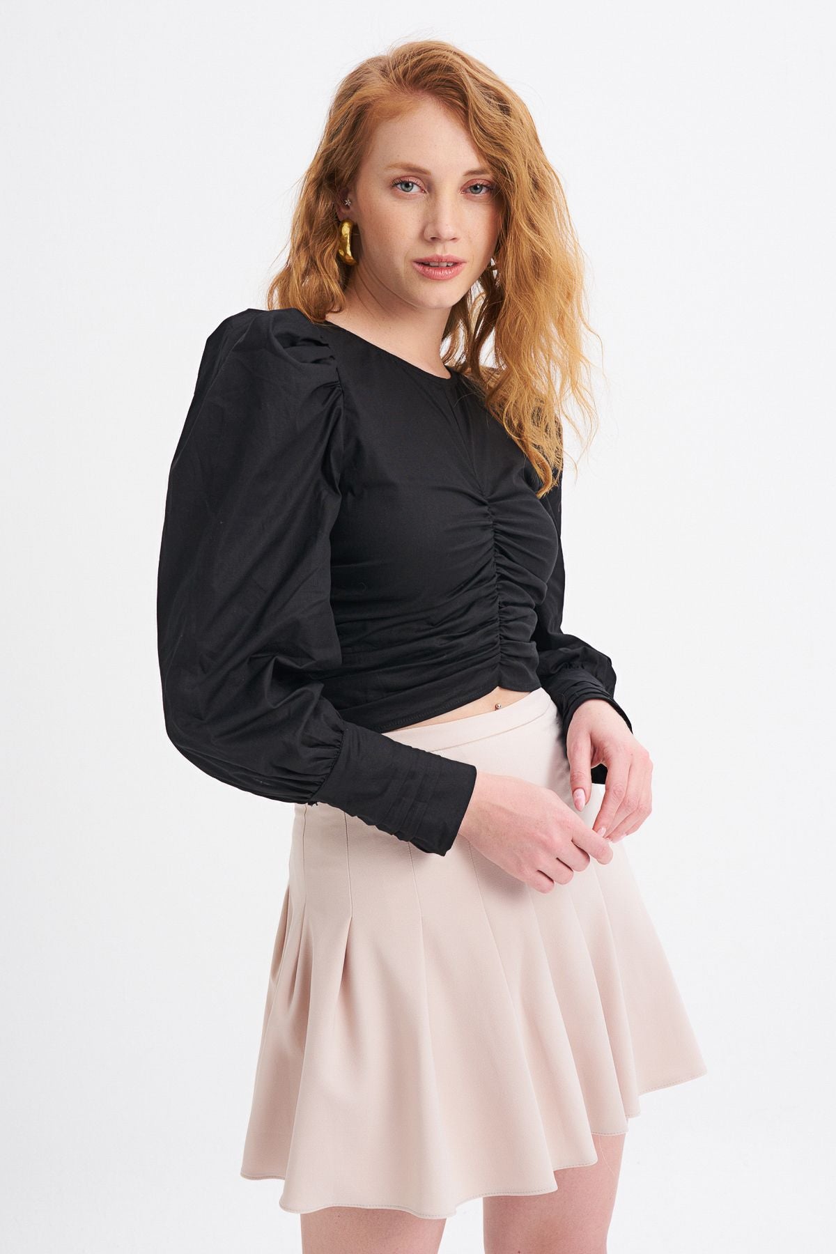 Balon Kol Gipeli Bluz Siyah