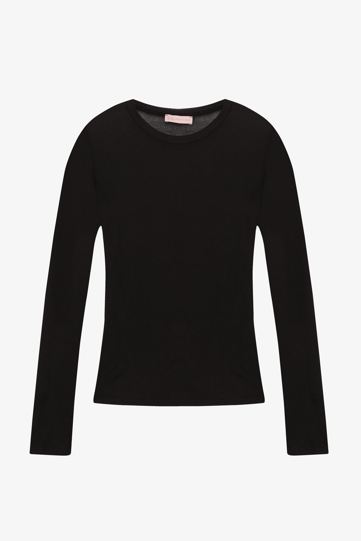 Yuvarlak yaka, uzun kollu, transparan görünümlü, ince kumaştan tasarlanmış, düz kesim basic bluz.