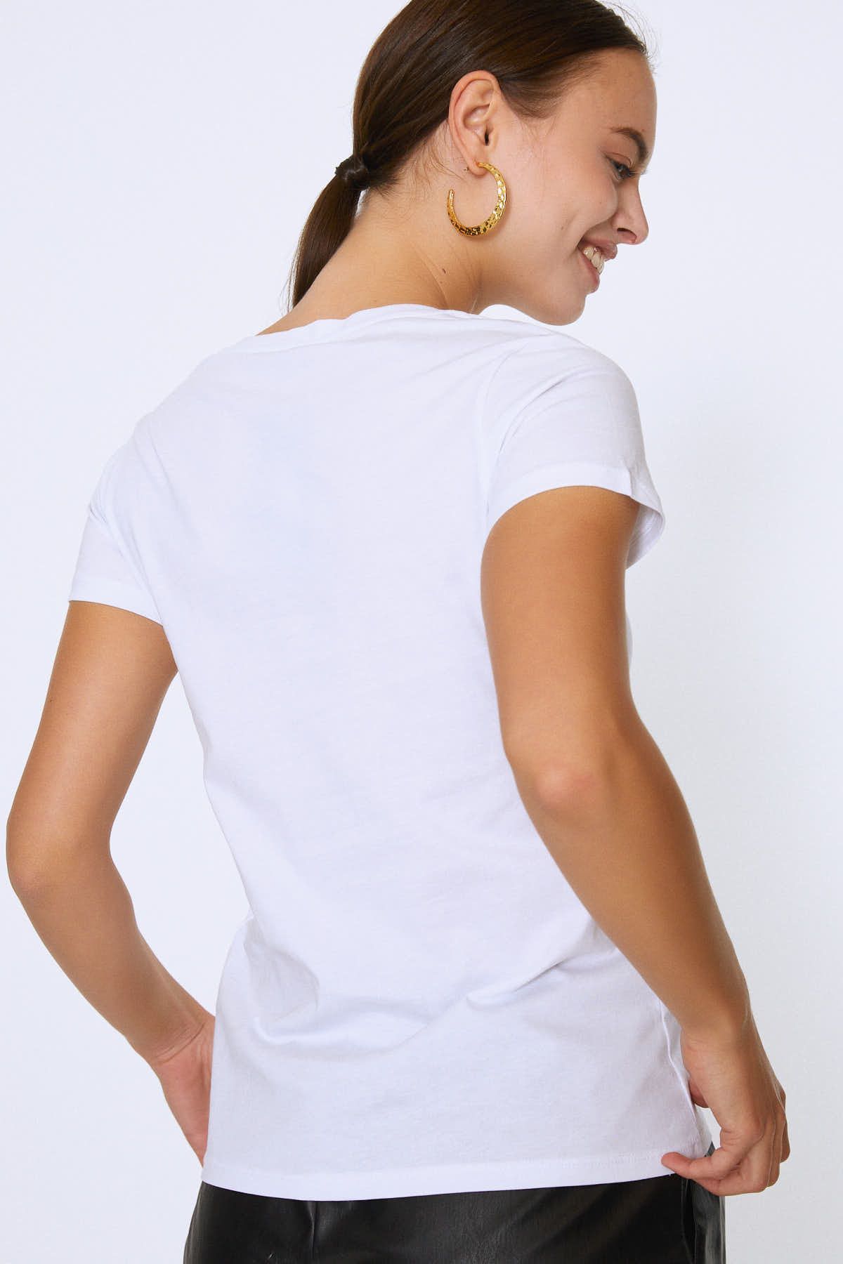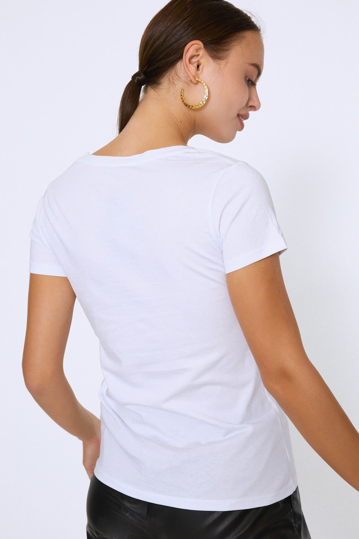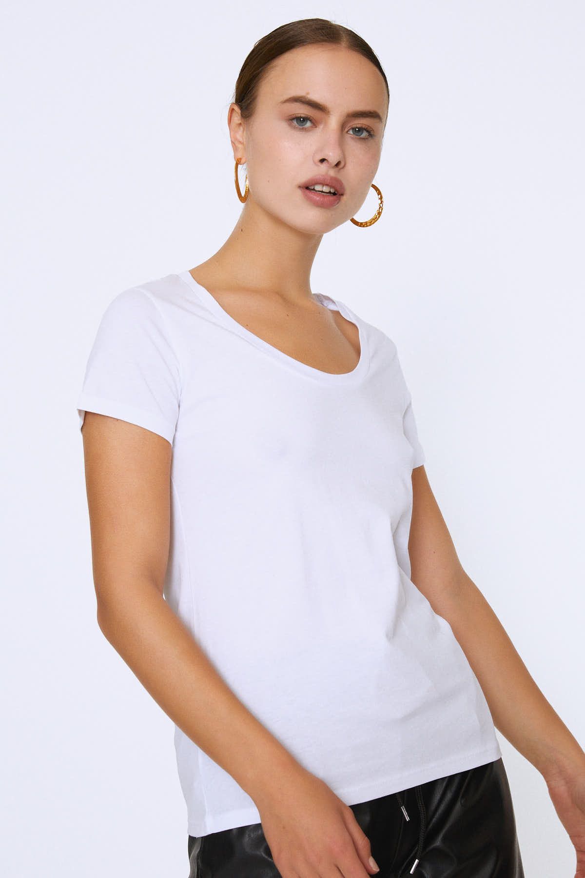 İşte günün kurtarıcısı tam karşında. V yaka basic t-shirt sade ama etkileyici kombinler oluşturmanın temel parçası olacak. Dolabında yer alan etekler ve pantolonlar onu çağırıyor.