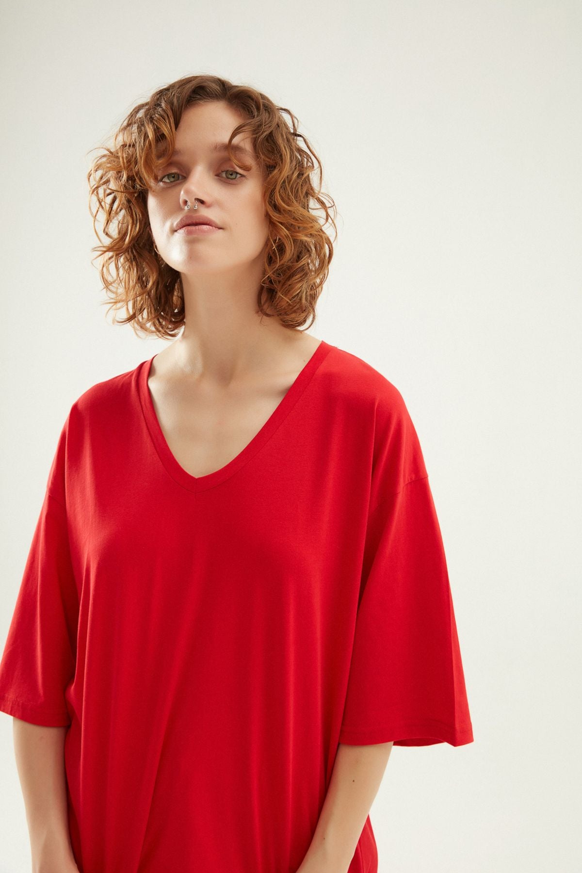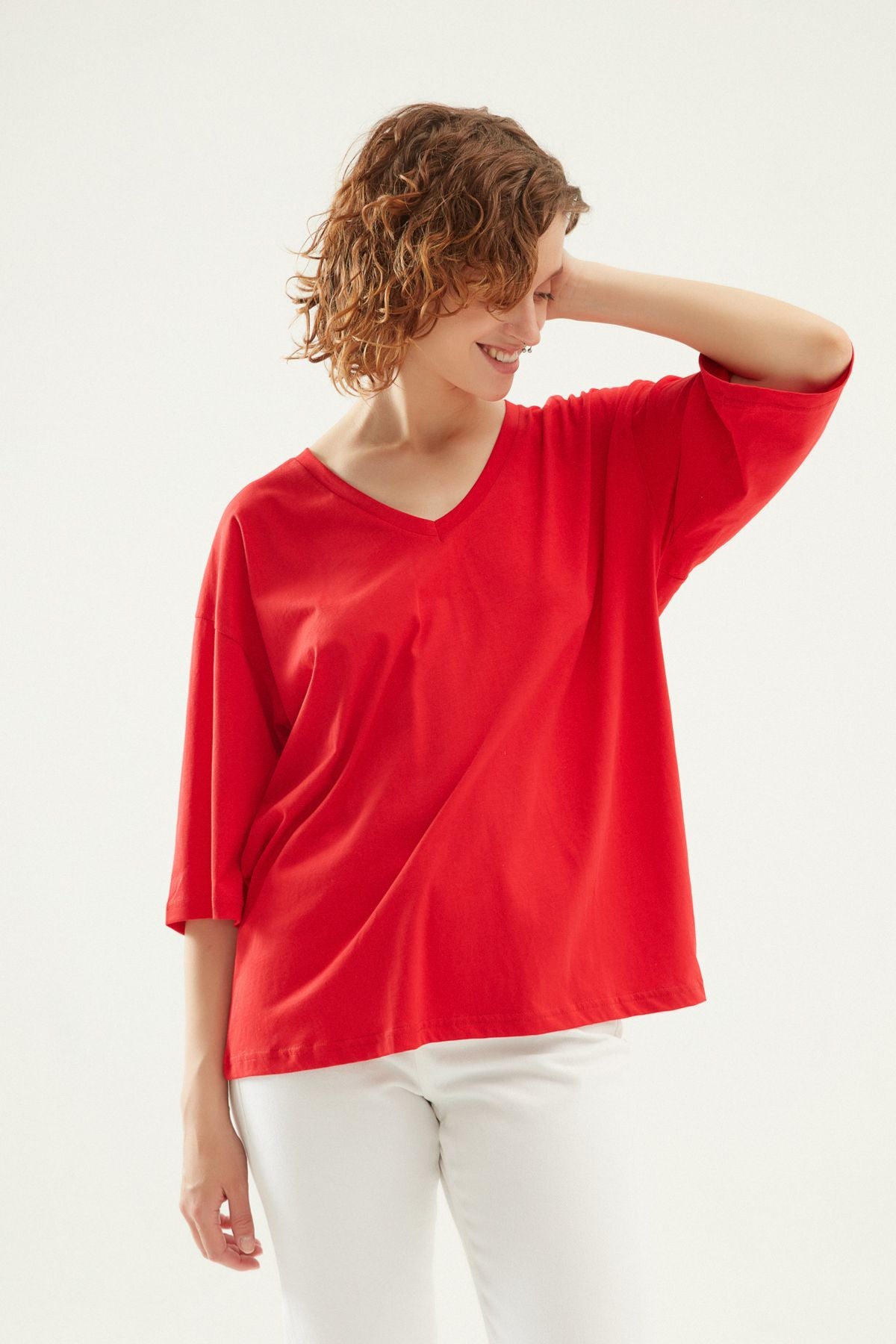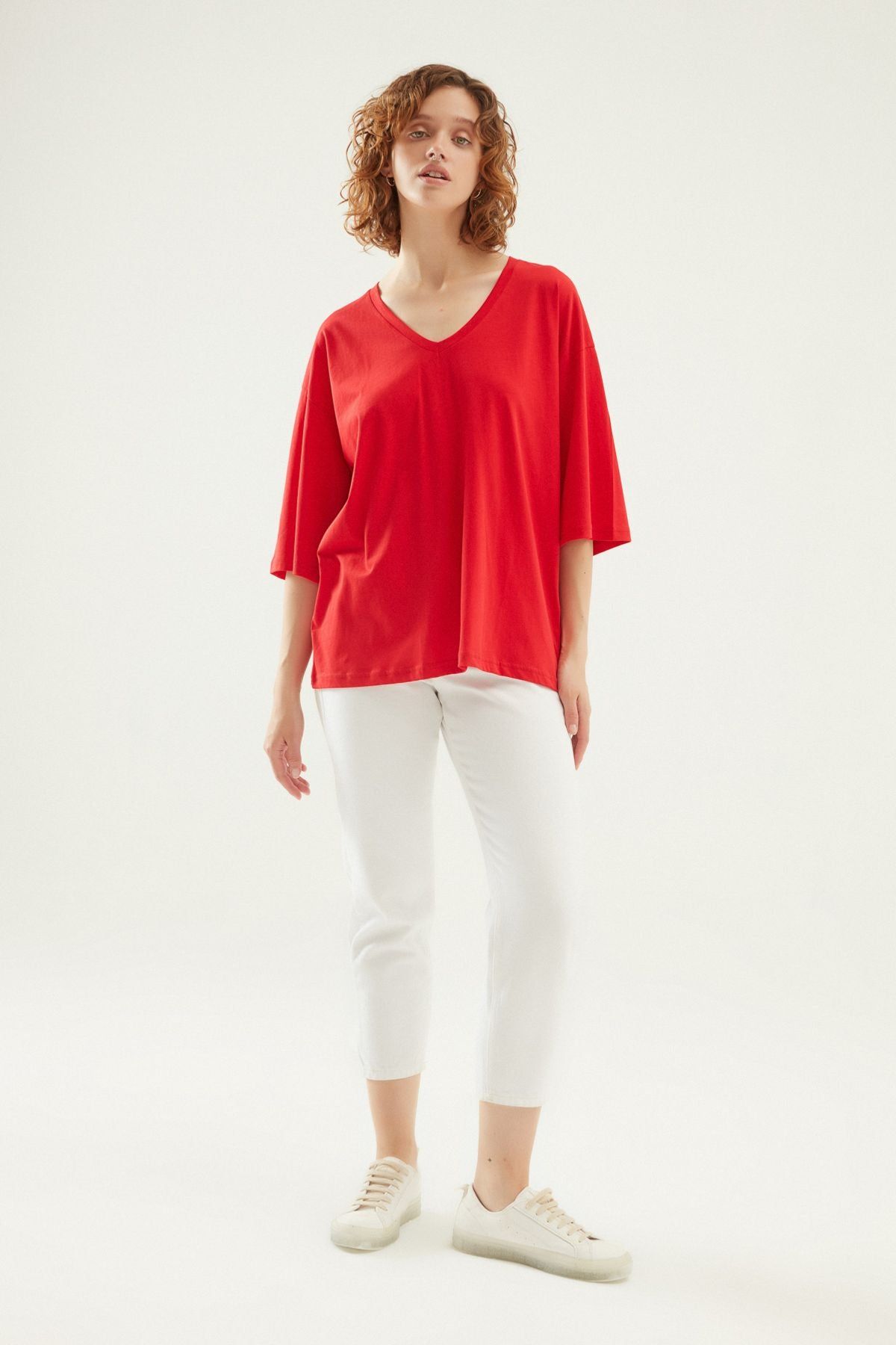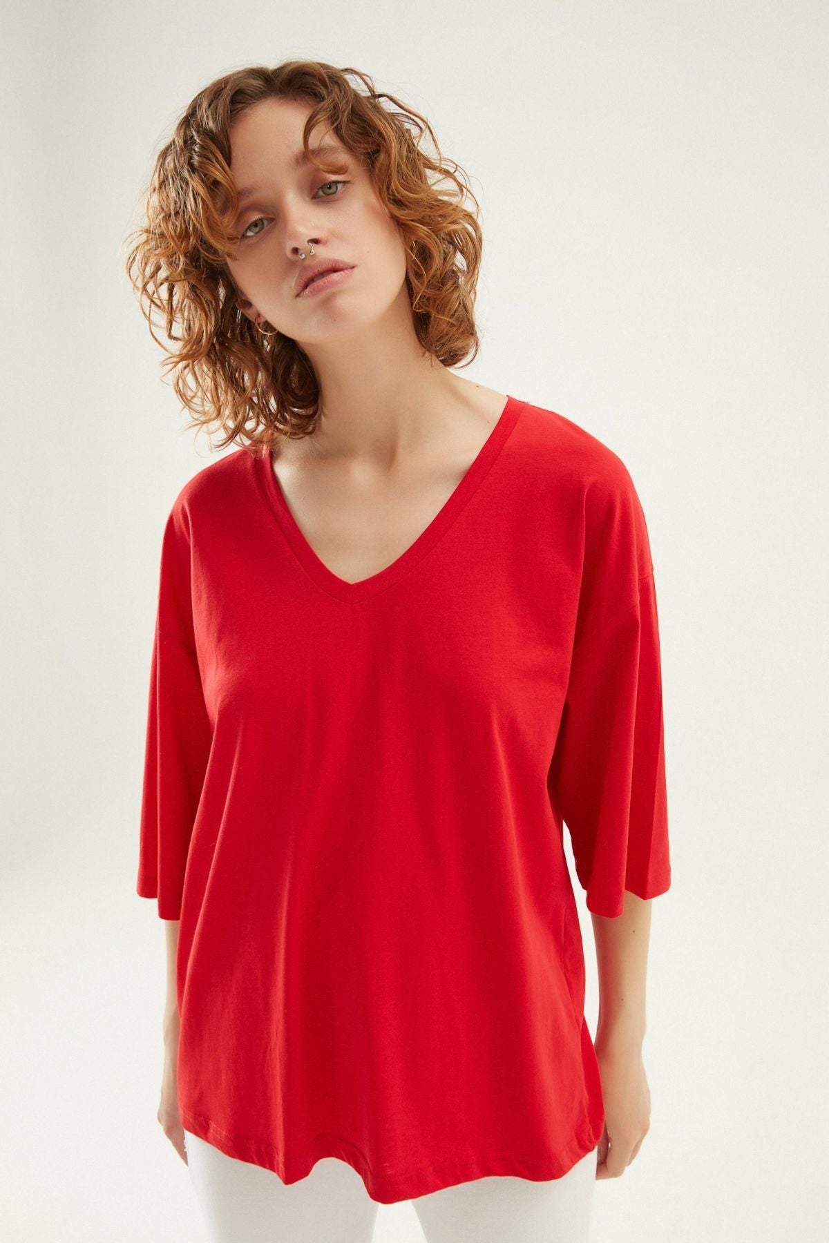 V Yaka Truvakar Kol Tişört Kırmızı