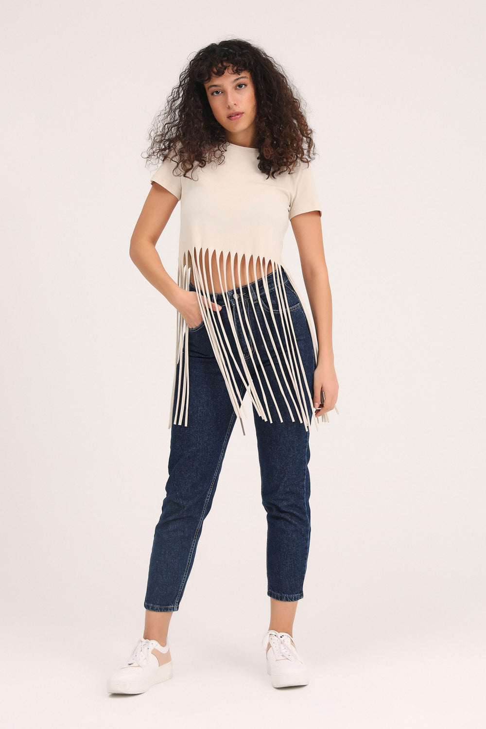 Ucu Püsküllü Tişört Bej