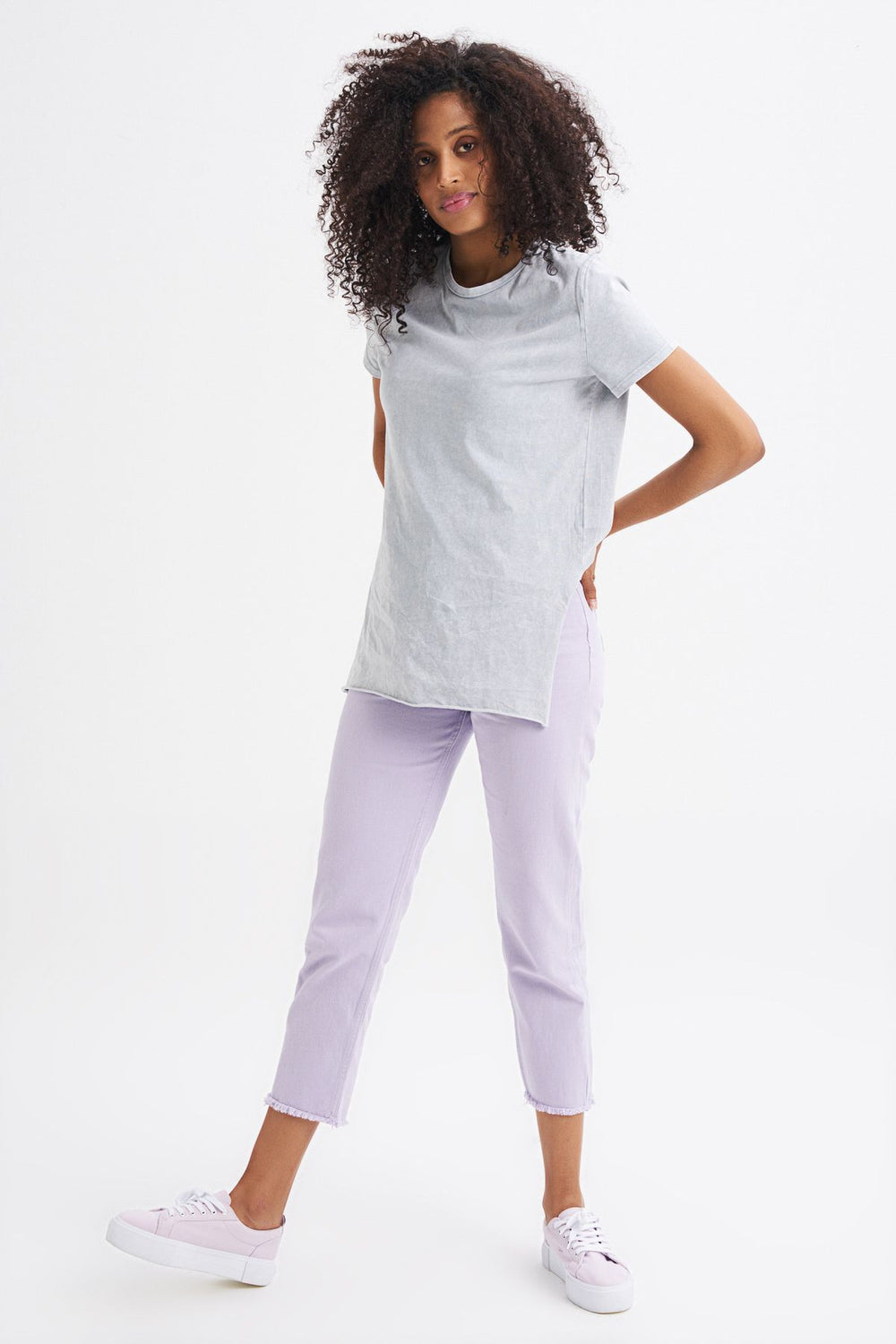 Yanı Yırtmaçlı Bisiklet Yaka Tişört Grimelanj