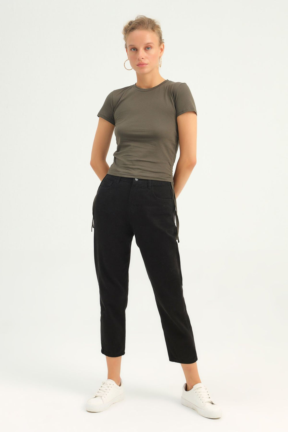 Yanları Büzgülü Basic Tişört Haki