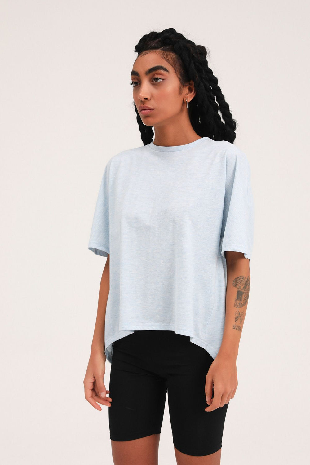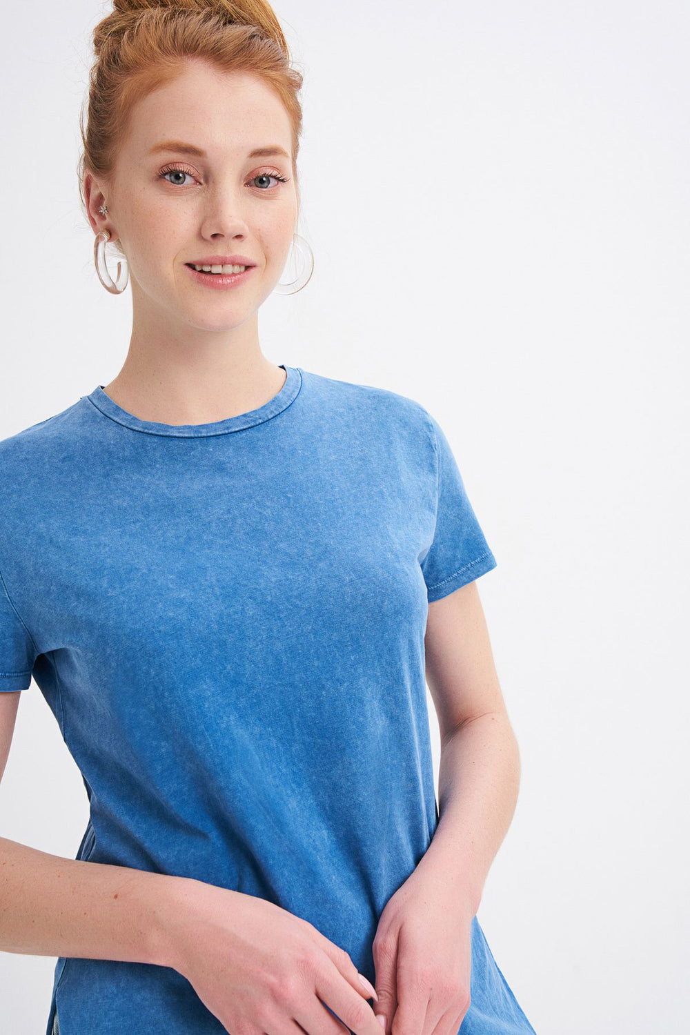 Yanı Yırtmaçlı Bisiklet Yaka Tişört İndigo