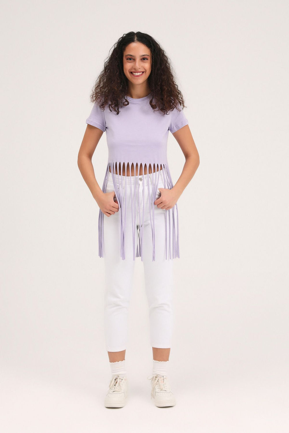 Ucu Püsküllü Tişört Lila