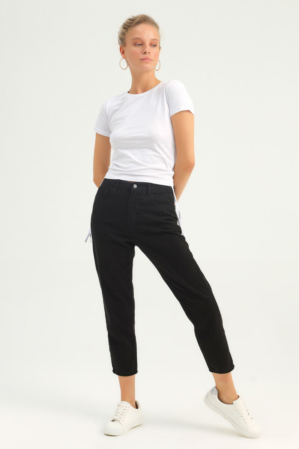 Yanları Büzgülü Basic Tişört Siyah