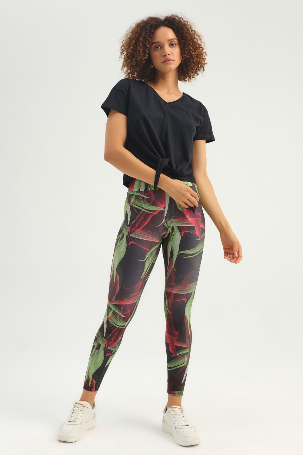 Önü Bağlamalı V Yaka Spor Tişört Siyah