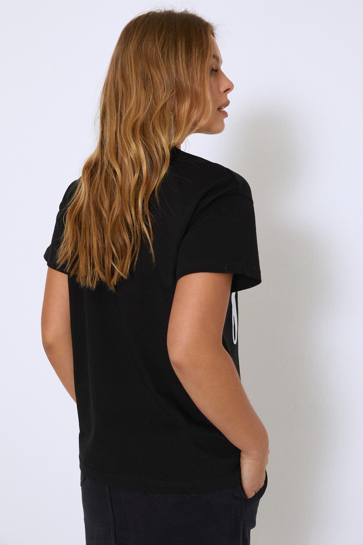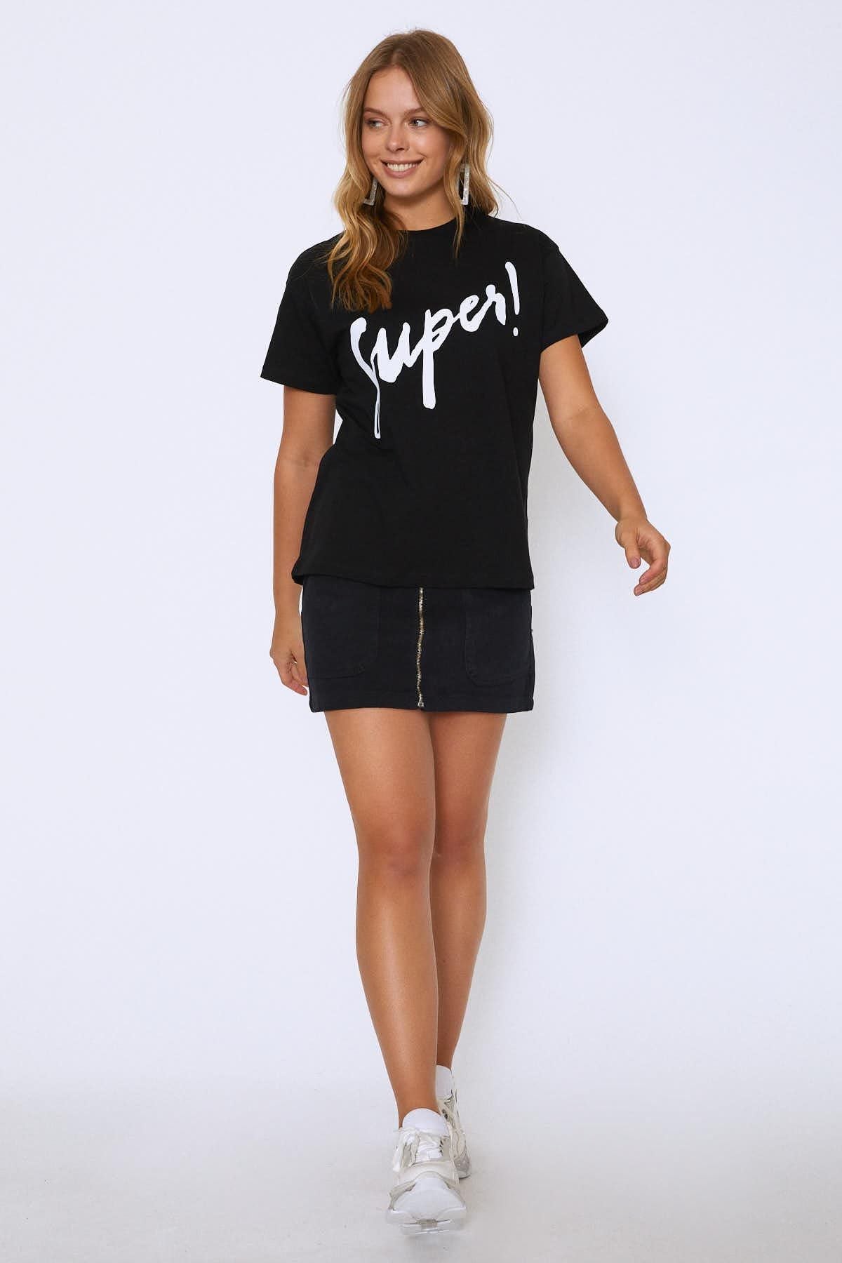 Önünde yer alan baskısı ile bacis üst grup tasarımlarına yeni bir hava getiren t-shirtünü skinny jeanlerle tamamlamak çok keyifli.