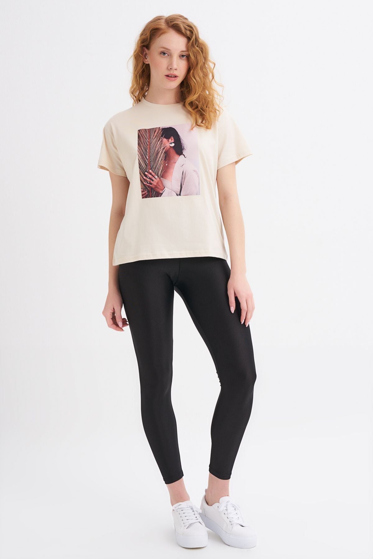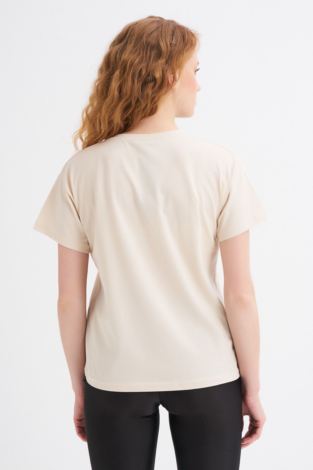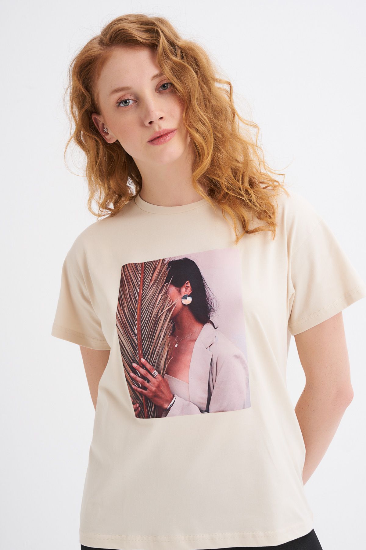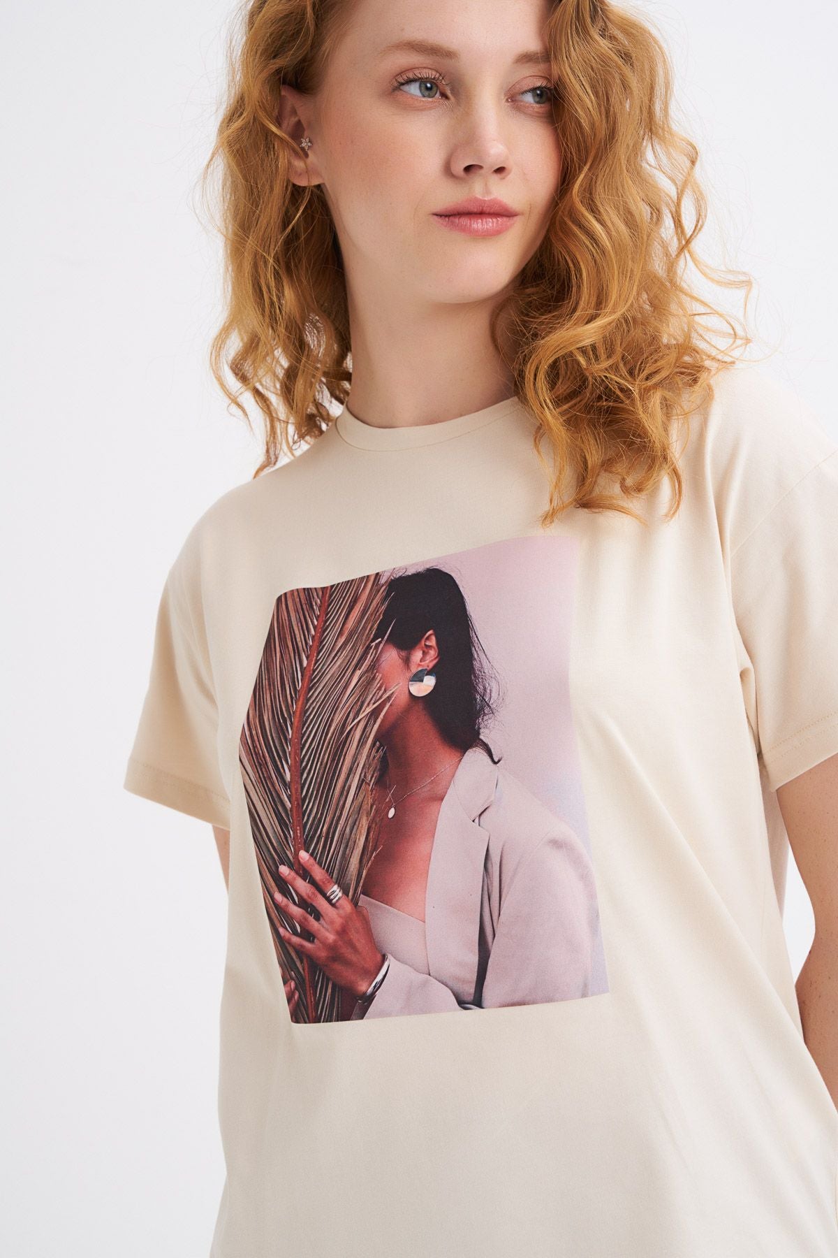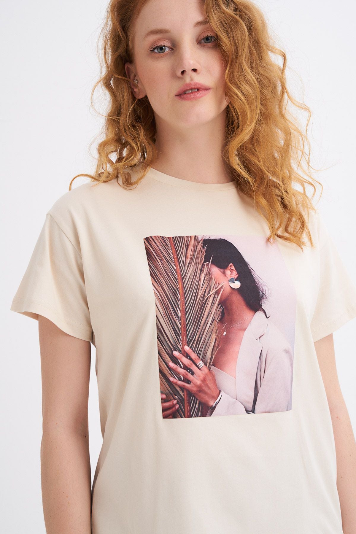 Basklı Tişört Açık Bej