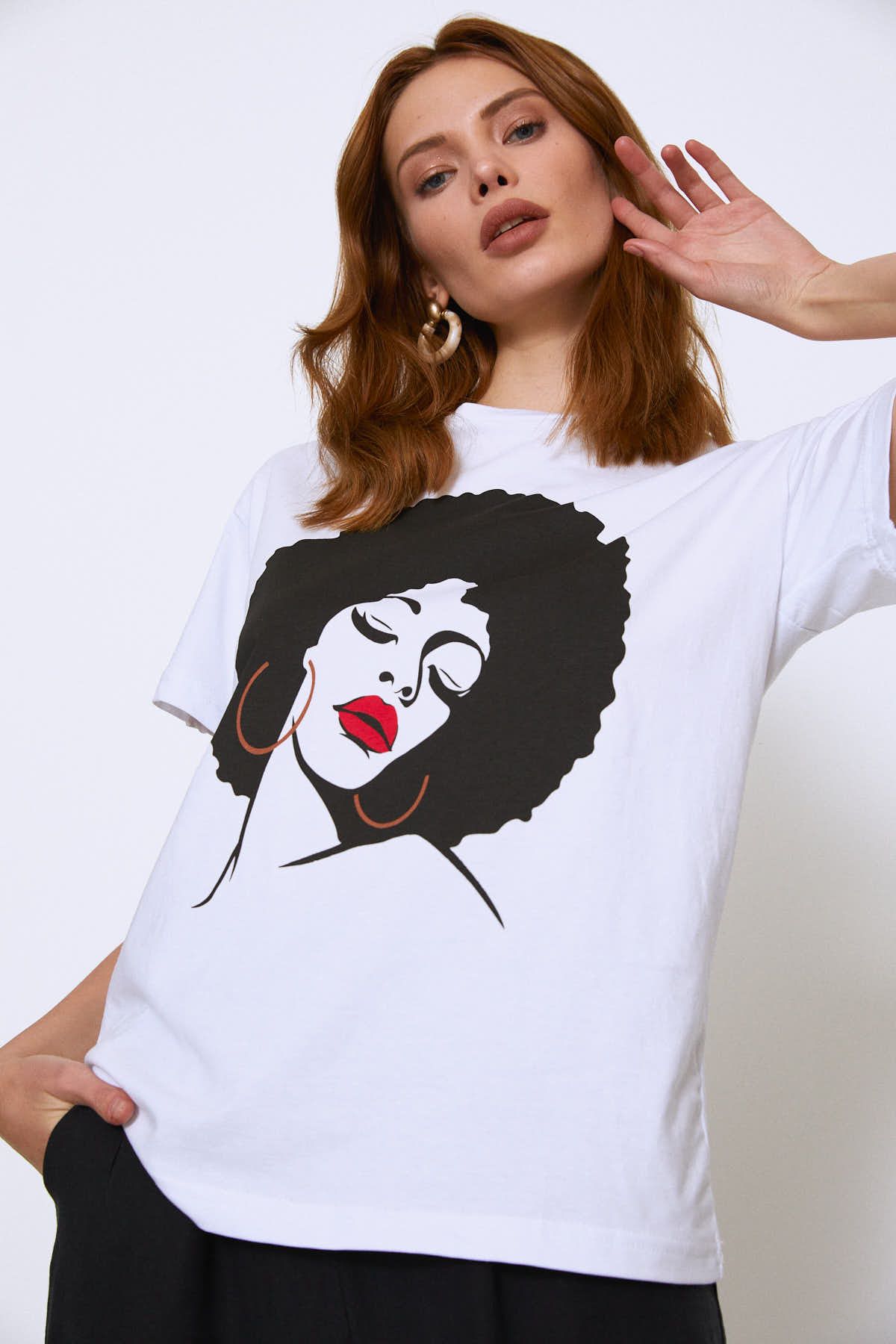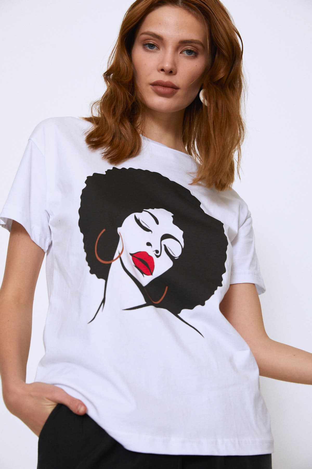 Önü Baskılı Tişört Beyaz