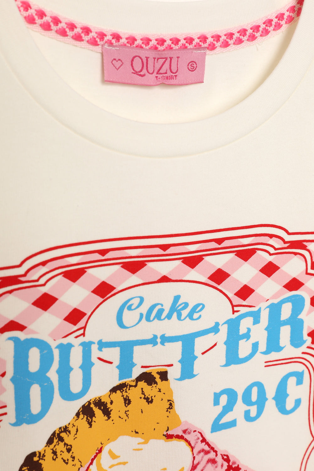 Renkli Pasta Baskılı Crop Tişört Ekru