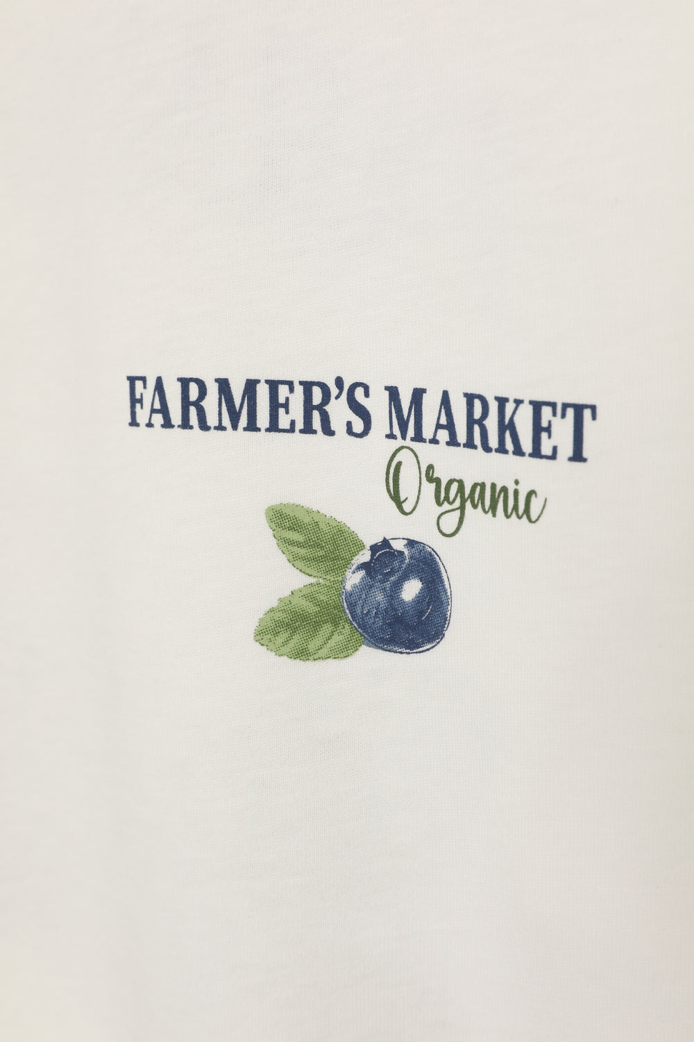 Bisiklet yaka, kısa kollu, ön ve arka kısmında yazı ve meyve baskı detaylı, rahat kesim tişört.