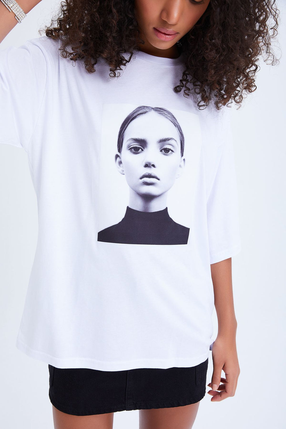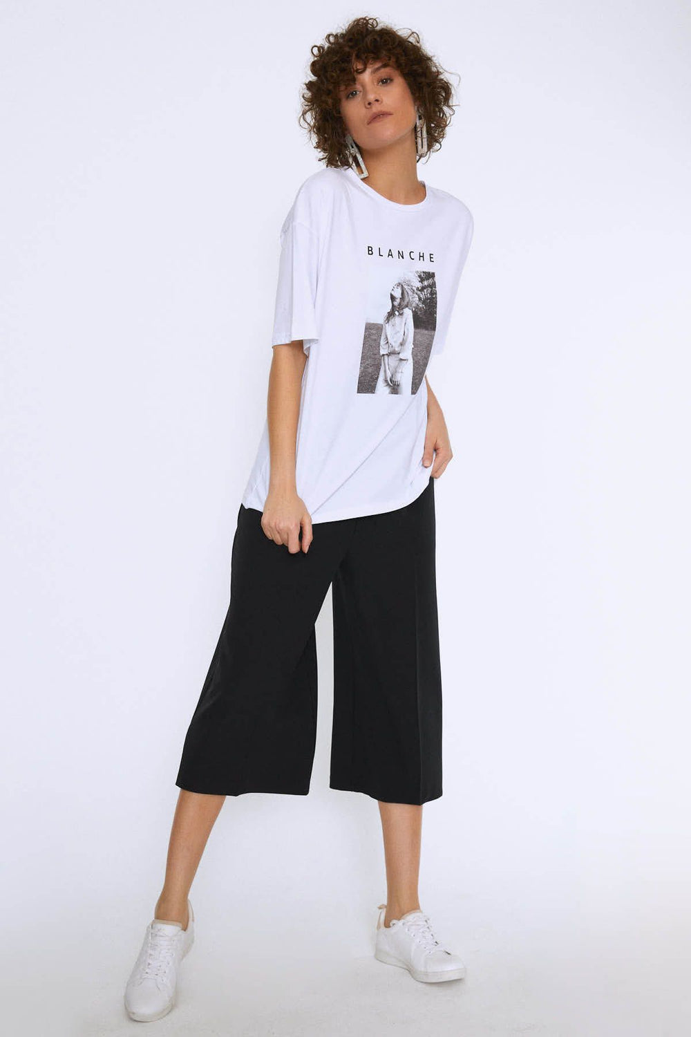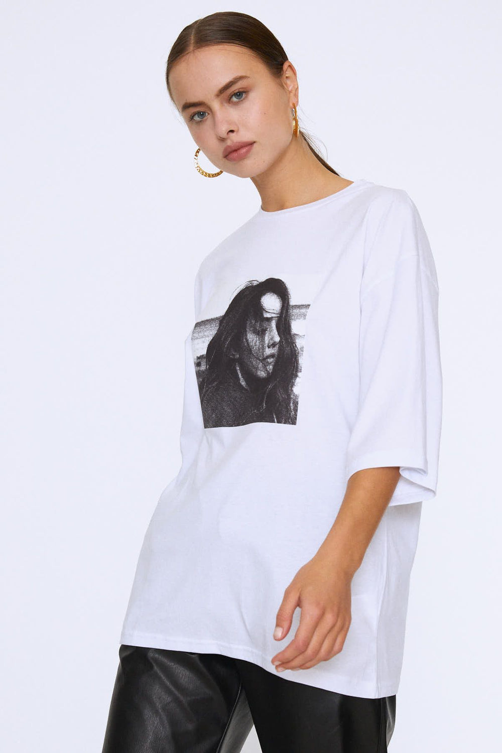 Oversize Baskılı Tişört Beyaz